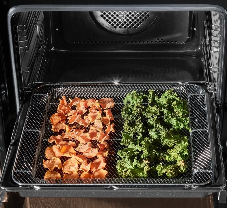 Потрібно швидко приготувати купу страв на велику компанію? Тепер це абсолютно реально за наявності 9 рівнів направляючих. Сушіть овочі чи фрукти, випікайте відразу декілька піц або готуйте велику порцію хрумких крилець, адже 6 направляючих з хромуванням та 3 додаткові телескопічні направляючі надають вам таку можливість.