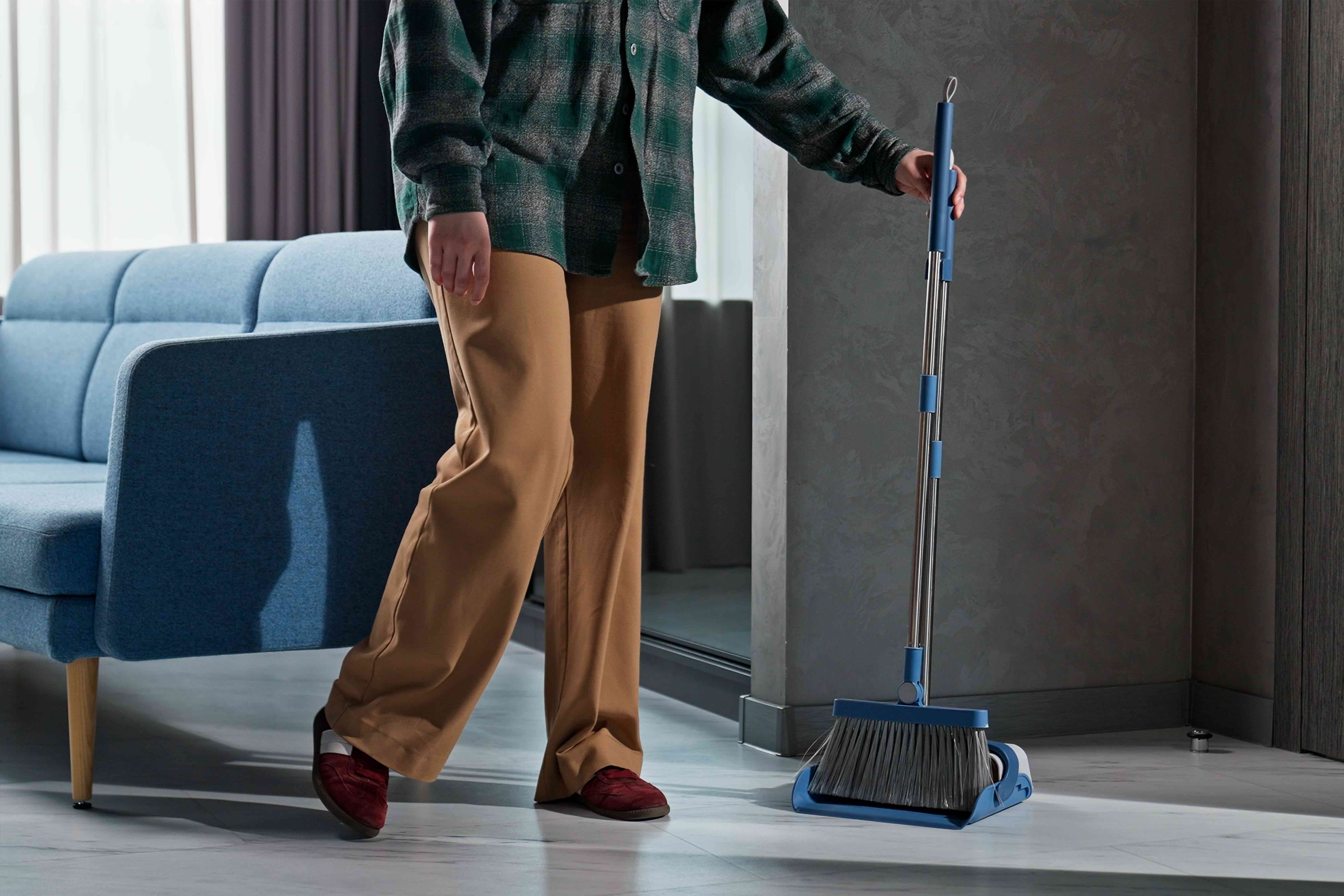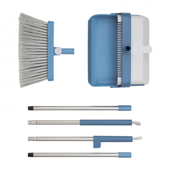 ARDESTO Набір для прибирання совок і щітка з довгою ручкою 79.2см, пластик, блакитний
