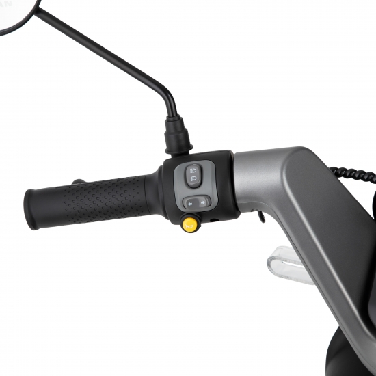 Конструкцією передбачено можливість встановити спереду корзину, яку надано в комплекті. Це практичне рішення для перевезення сумок, пакунків або особистих речей. Користувач сам вирішує, чи встановлювати її, адаптуючи скутер до власних потреб.