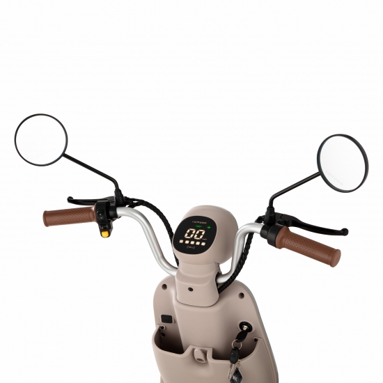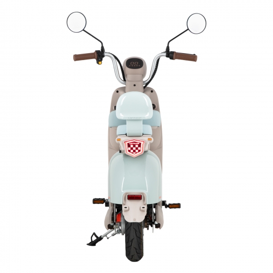 Це стильна та зручна модель з електродвигуном потужністю 400 Вт. Забезпечує швидкість до 25 км/год і запас ходу до 60 км на одному заряді. Міцна конструкція вагою 68,5 кг, ергономічне сидіння, безшумна робота та брак викидів роблять скутер оптимальним для щоденного використання в міських умовах і не тільки.
