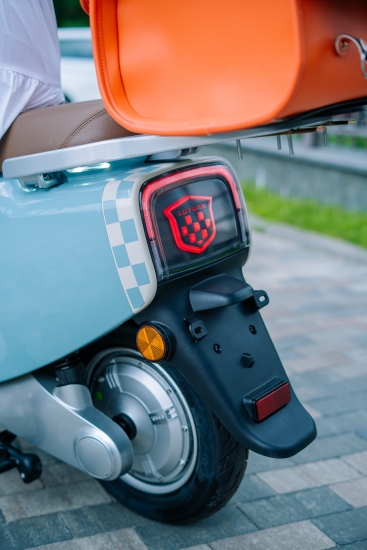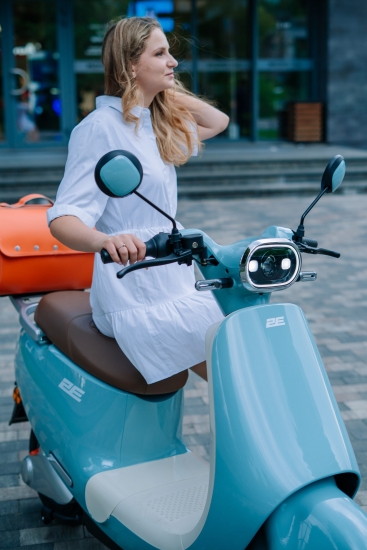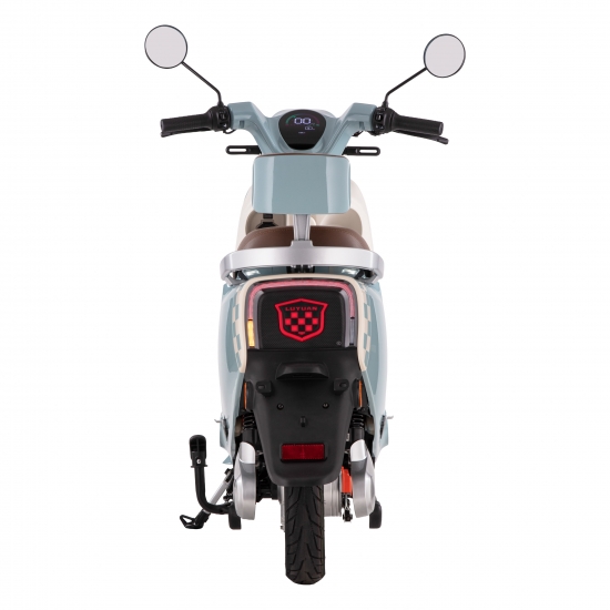 Електроскутер важить лише 94 кг, що робить його маневреним і зручним щодо керування навіть для водіїв-початківців. Зручне сидіння доповнено комфортною спинкою для пасажира – вдале рішення для їзди удвох. А велике переднє крило надійно захищає від бризок.
