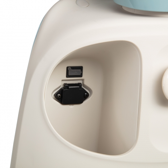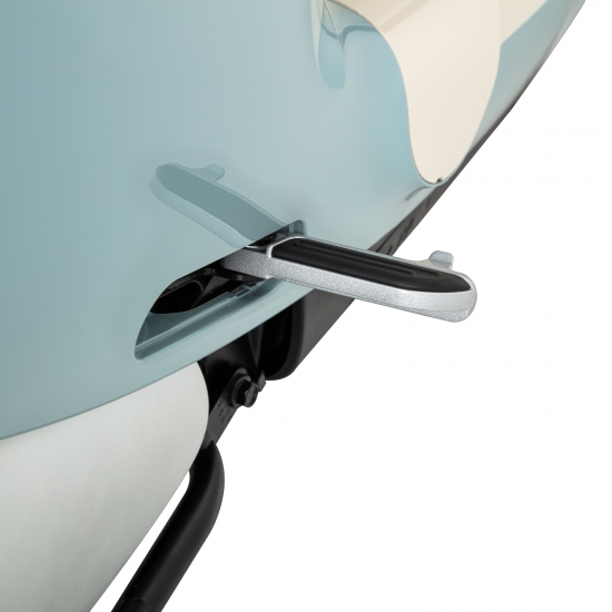 Увагу привертає стильне оформлення в ретростилі: м’яке поєднання ніжного блакитного та кремового кольорів із декоративним шаховим орнаментом створює неповторний образ. Цю модель легко уявити припаркованою біля модної кав’ярні, на міських бульварах або в кадрі стильної фотосесії.