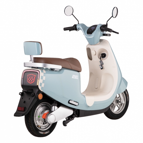 Скутер 2E MQ6 обладнано надійними дисковими гальмами, які гарантують ефективне гальмування за будь-яких умов. Модель повністю електрична, тож є абсолютно екологічною – жодних викидів, жодного шуму.