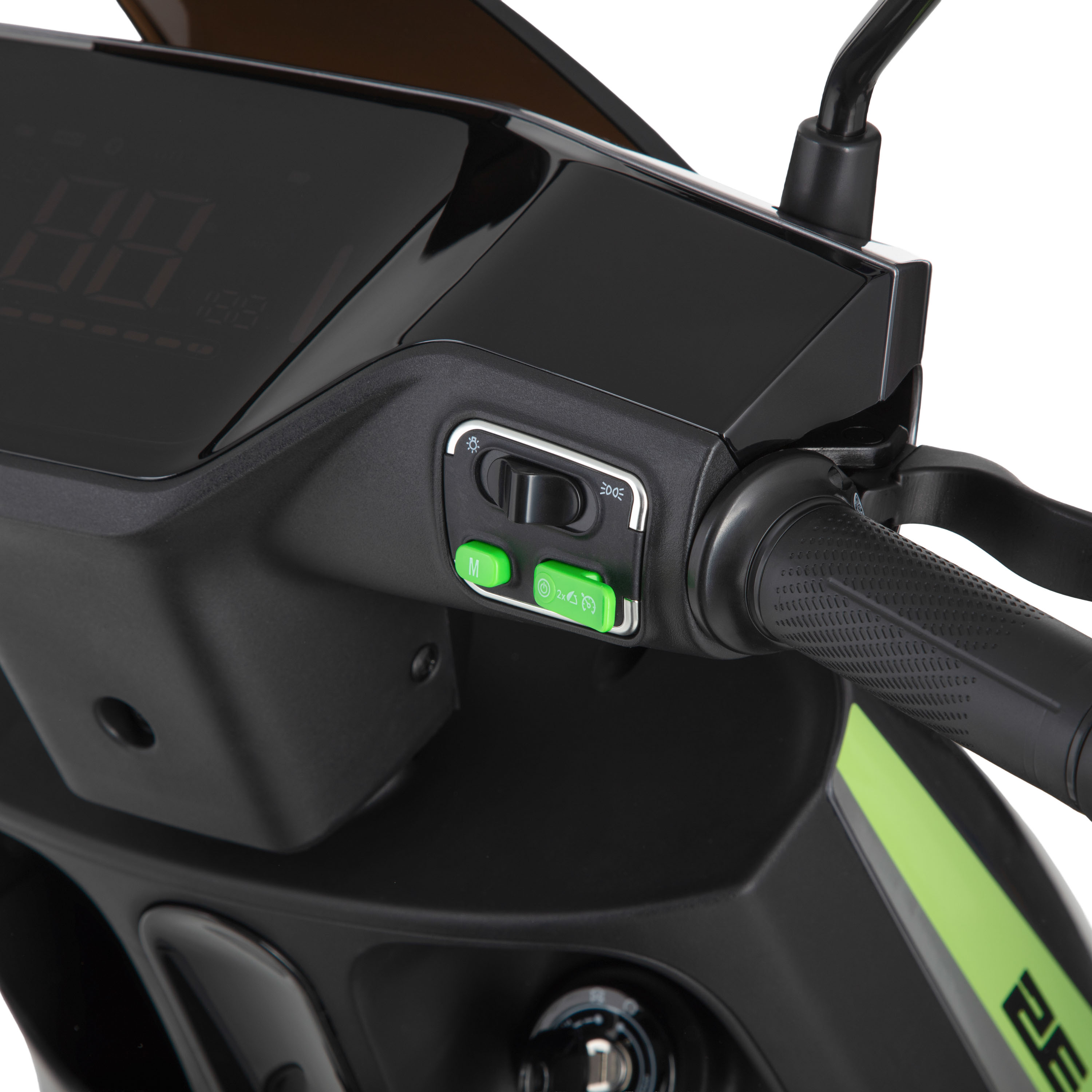 Оснащений електродвигуном потужністю 1 500 Вт, скутер забезпечує впевнене прискорення і комфортну швидкість до 60 км/год. Він легко справляється з міським трафіком, ухилами та бездоріжжям. Розумна енергосистема дає змогу балансувати між дальністю поїздки та динамікою:
