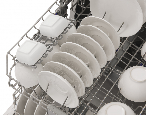 Ми можемо розгорнути або скласти полиці, щоб звільнити більше місця для завантаження. Відкиньте полиці, щоб додати чашки або столові прилади нестандартних розмірів. Це забезпечує надзвичайну зручність і гарантує ідеальний результат миття.