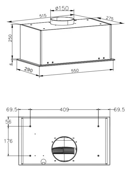 Технічні характеристики Витяжка Hansa вбудована, 55см, 790м.куб/год., білий: