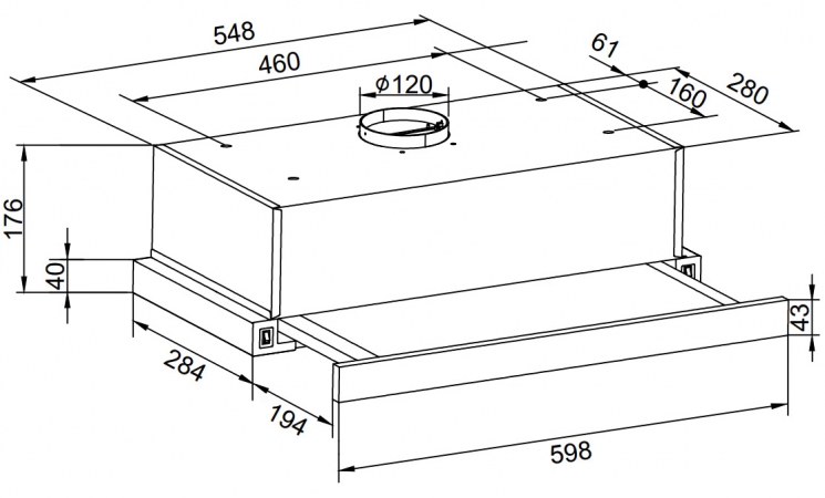 Витяжка Hansa телескопічна, 60см, 270м.куб/год., чорний