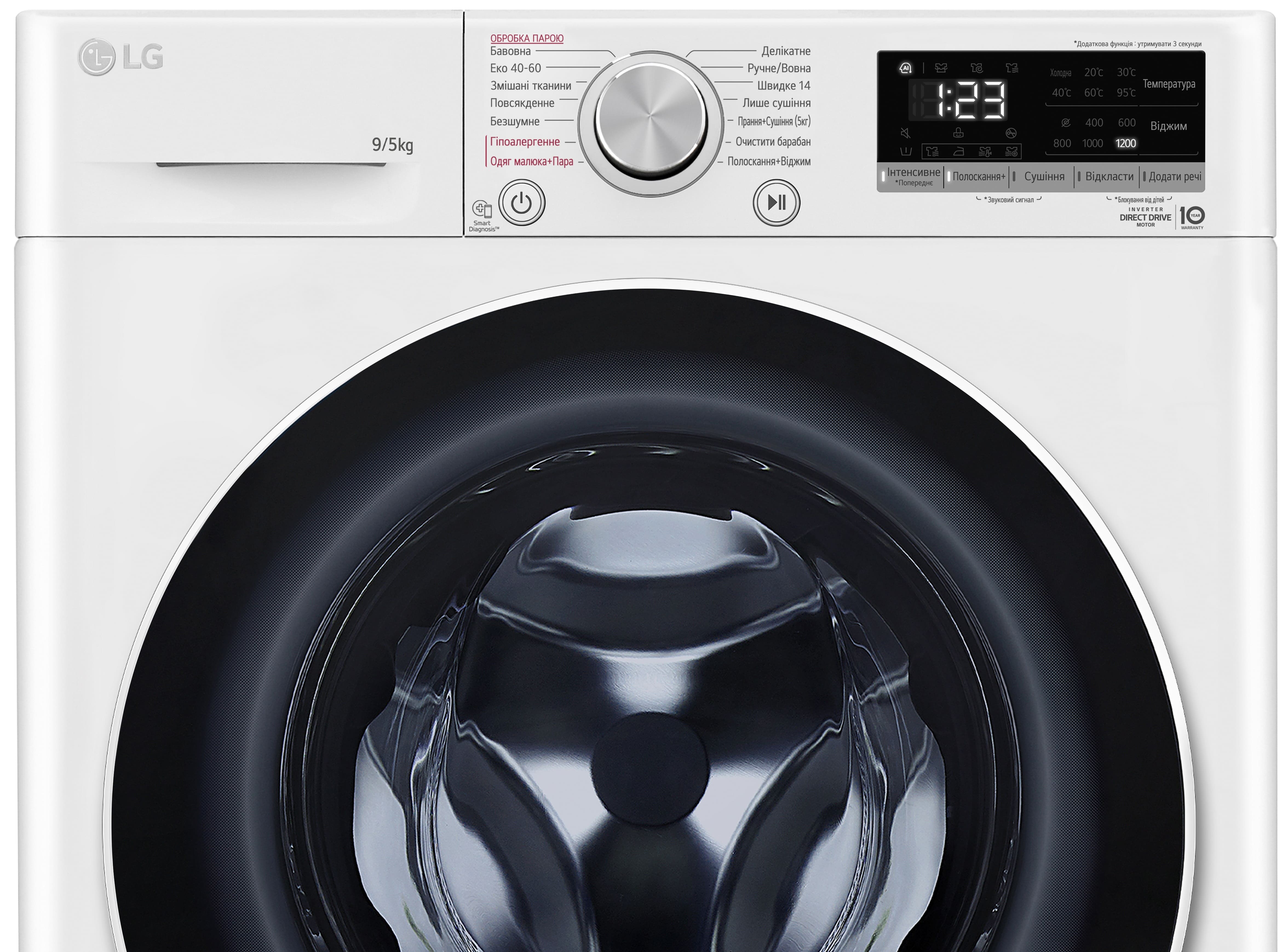 Прально-сушильна машина LG фронтальна, 9(5)кг, 1200, А, 48см, дисплей, пара, інвертор, білий