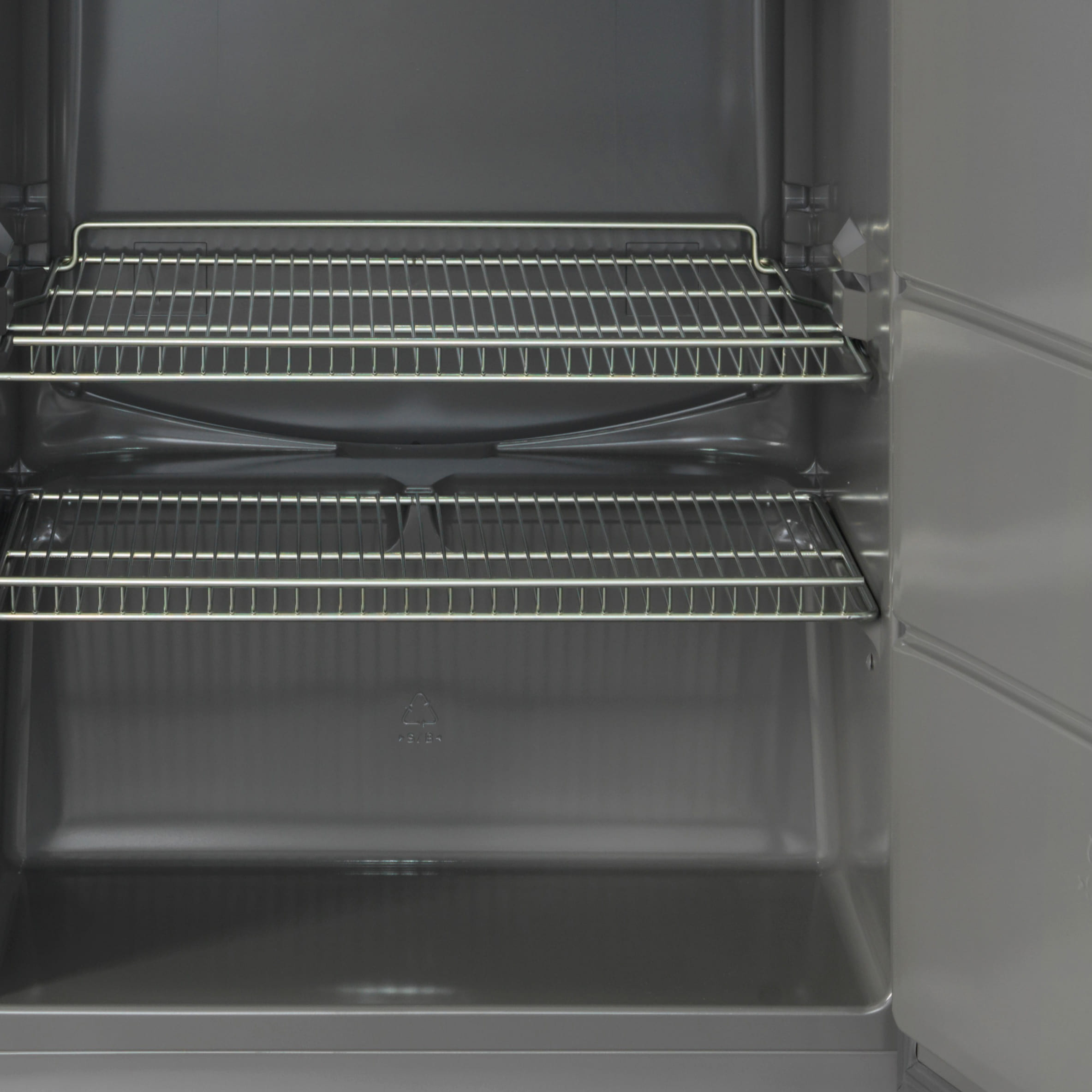 Статична система охолодження забезпечить енергоефективне охолодження та безперебійну роботу. Це дає змогу зберігати величезну кількість різноманітних продуктів: картоплю, овочі, готове до вживання м'ясо, сир, консерви, всілякі напої. Усі їх буде легко і зручно завантажити на міцні регульовані дротяні полиці, що регулюються. Кожна полиця витримує вагу до 50 кг. Тому продукти можна розміщувати разом з упаковкою і коробками.