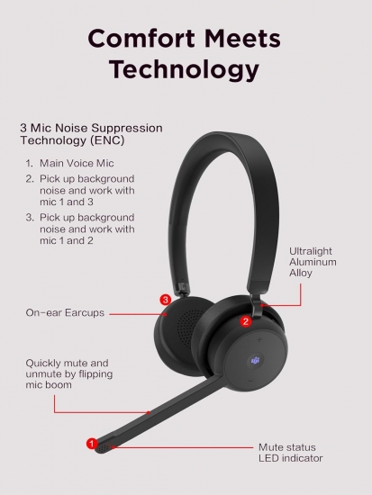 Гарнітура Lenovo Wireless VoIP Headset (Teams) - це високоякісна бездротова гарнітура, спеціально розроблена для оптимальної роботи з Microsoft Teams. Вона забезпечує чудову якість звуку, що робить її ідеальною для відеоконференцій, дзвінків та онлайн-співпраці. Завдяки технології шумозаглушення, ви зможете насолоджуватися чистим звуком без сторонніх шумів, що особливо важливо під час важливих дзвінків та зустрічей.