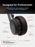 Гарнітура має ергономічний дизайн, що забезпечує комфортне носіння протягом тривалого часу. М'які амбушури зручно облягають вуха, не викликаючи дискомфорту навіть після багатогодинного використання. Легка конструкція гарнітури дозволяє зручно носити її протягом всього робочого дня.