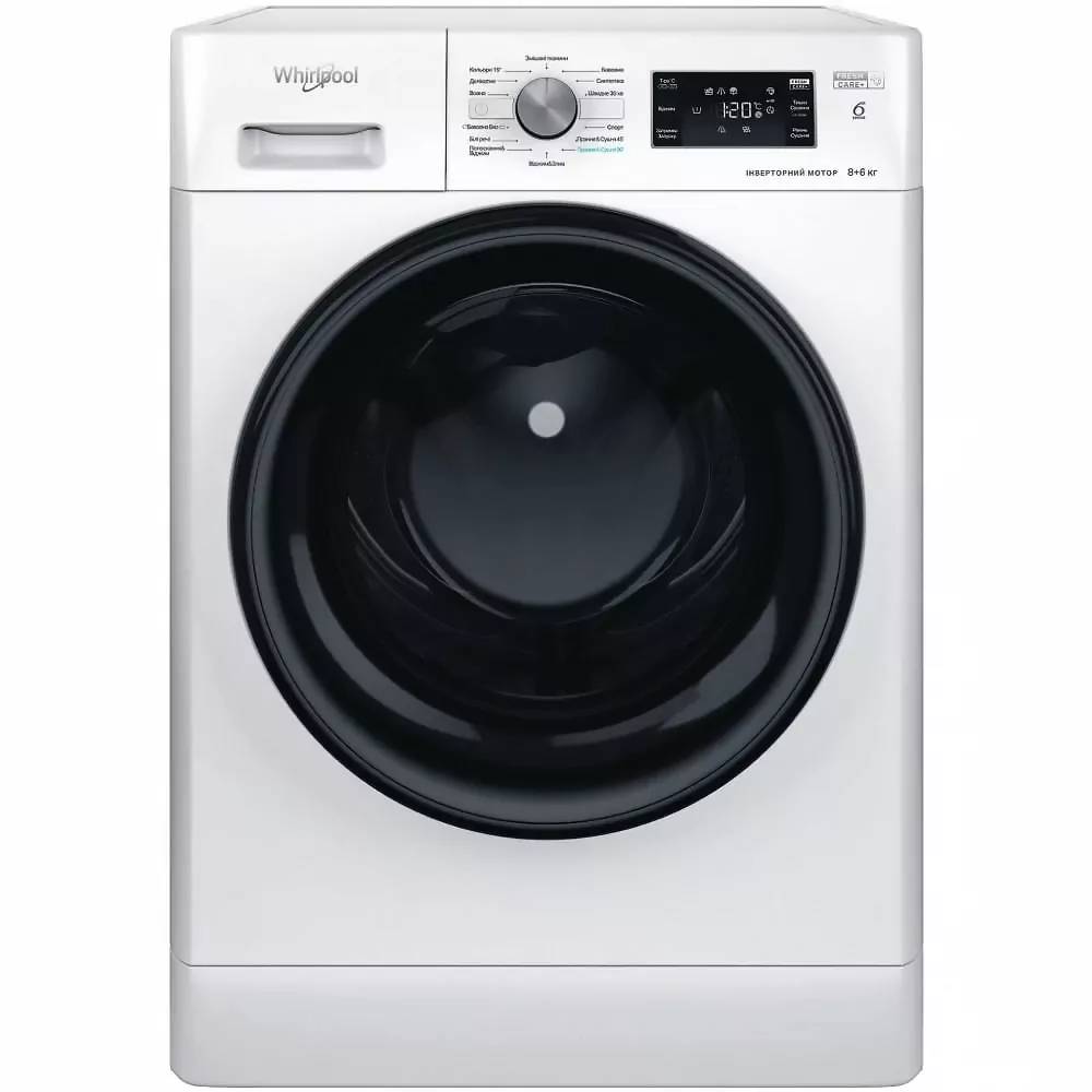 Опис Прально-сушильна машина Whirlpool фронтальна, 8(6)кг, 1400, A, 60см, дисплей, пара, інвертор, білий