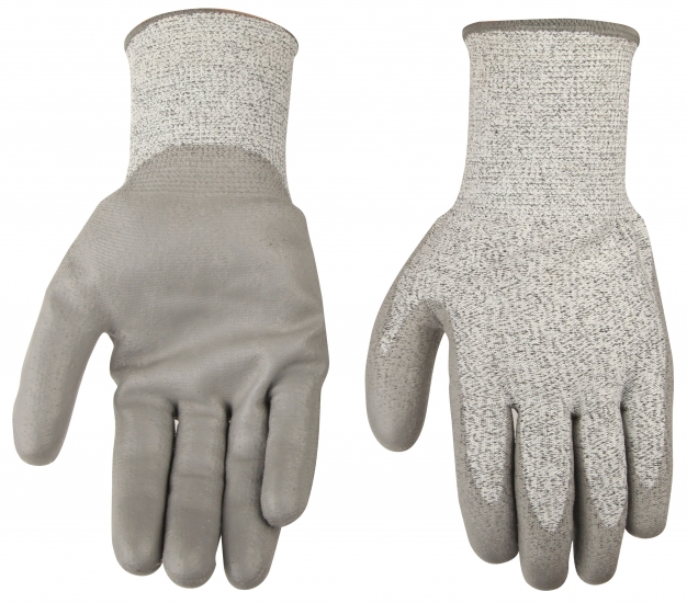 Робочі рукавички Tolsen відповідають нормам CE та забезпечують 5 рівень захисту від порізів. Поліуретанове покриття підвищує стійкість до зачіпок і стирання, забезпечуючи надійний захист і довговічність у роботі.