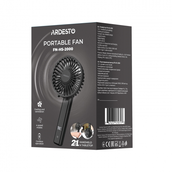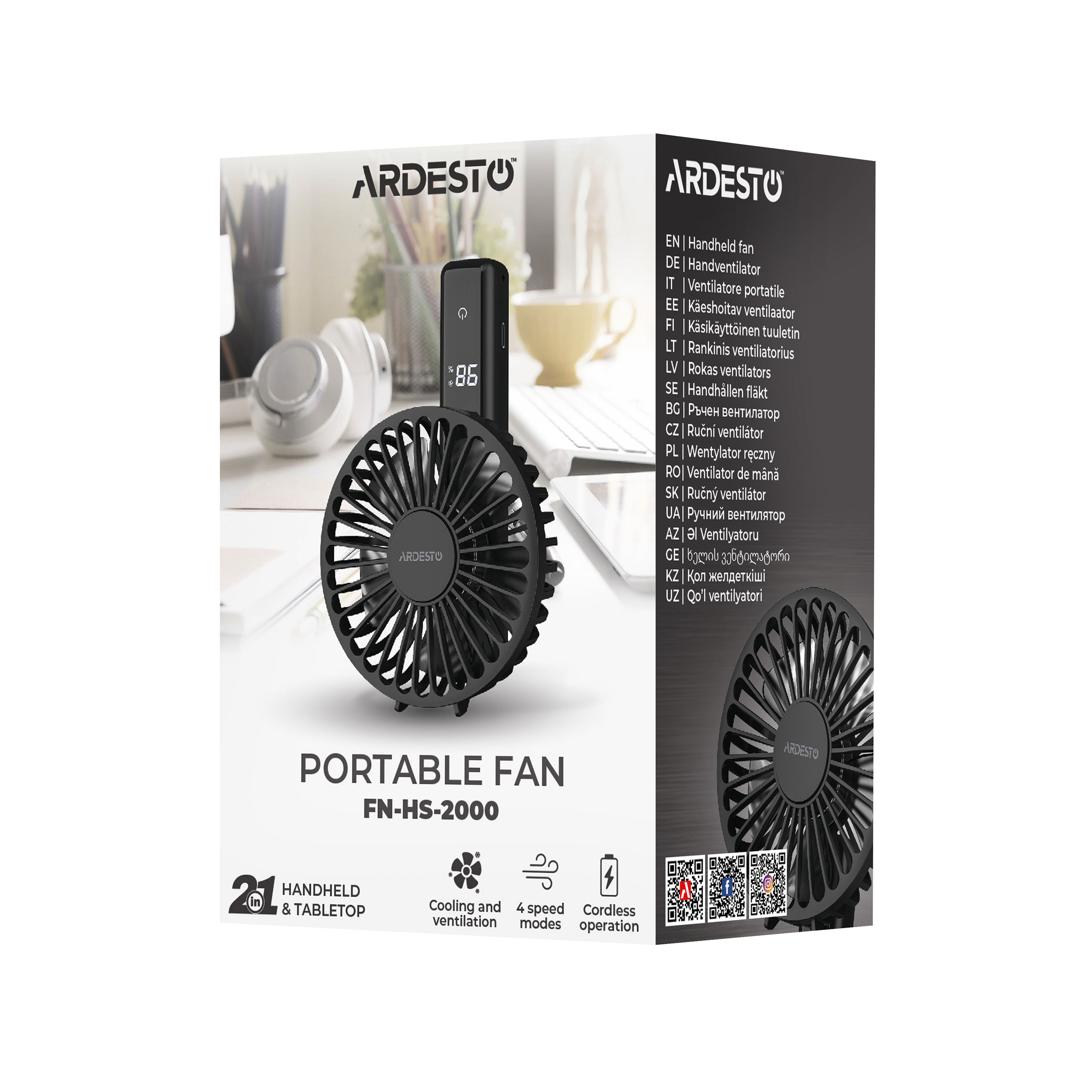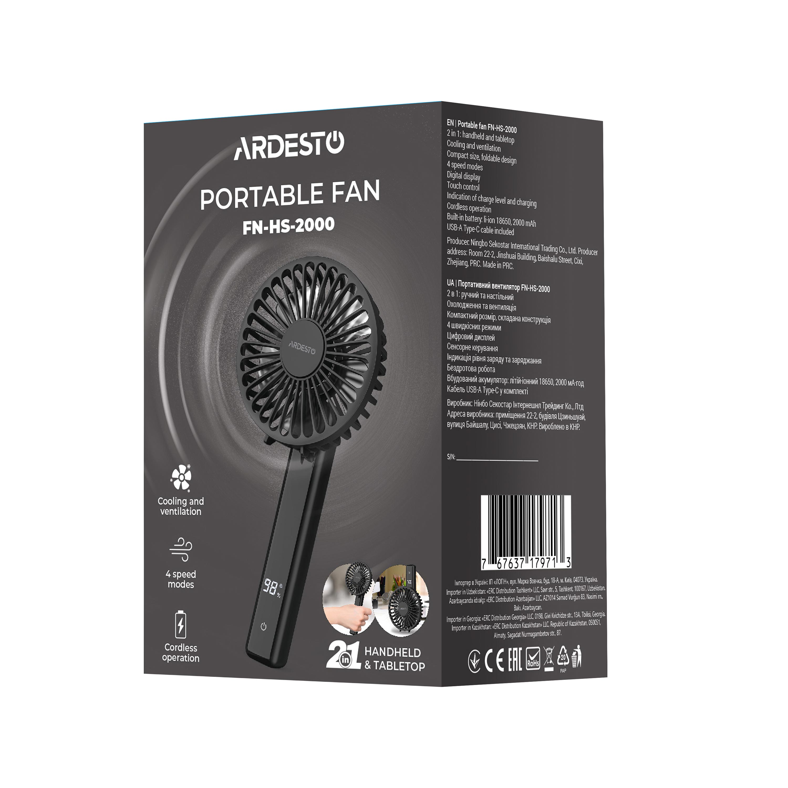 ARDESTO FN-HS-2000 – це портативний вентилятор, який поєднує мобільність і високу продуктивність. Завдяки особливостям конструкції пристрій можна використовувати як вручну, так і встановити на рівній поверхні. Легкий та ергономічний корпус зумовлює зручний хват, а невеликий розмір (19,5 × 9 × 6,5 см) робить його ліпшим аксесуаром під час подорожей.