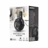 Чорний корпус із білими лопатями має стильний і лаконічний вигляд. П’ять пластикових лопатей створюють рівномірний потік повітря, а невеликий діаметр (6,5 см) робить пристрій компактним і водночас ефективним. Завдяки потужності 5 Вт вентилятор чудово справляється із завданнями, а безпечна конструкція зумовлює можливість використовувати його навіть у дитячій кімнаті.
