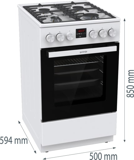 Опис Плита Gorenje газова, 67л, 50x60см, дисплей, IconLed, чавун, білий