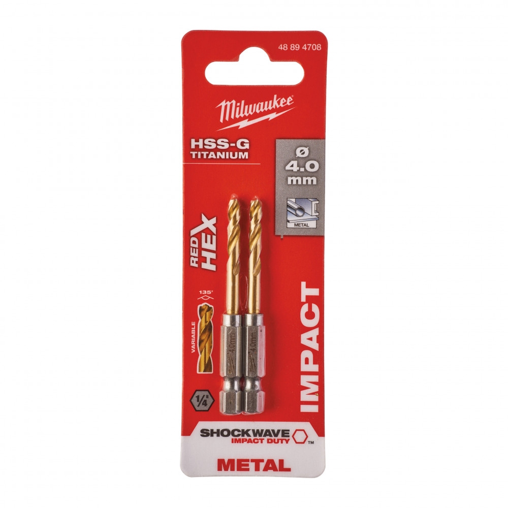 Сверло Milwaukee по металлу RedHEX HSS-G TiN, 4,0 мм, (2шт) (48894708)