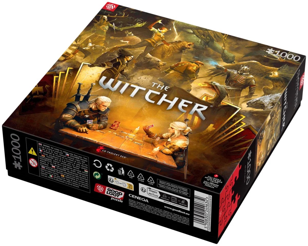 Серія Good Loot Gaming створена для шанувальників ігор, які хочуть розширити свій досвід улюбленого всесвіту в реальний світ. Збираючи якісні пазли, вони відпочиватимуть і відтворюватимуть культові образи, які врізалися в пам’ять їхніх шанувальників. Перегляньте турнір Witcher Gwent! Остання гра-головоломка у всесвіті Відьмака показує, як Ґеральт намагається зберегти покерне обличчя, а Цірі вже планує свій виграш. 1000 штук, повних атмосфери, дії та карткових стратегій. Нехай вас затягнуть до столу!