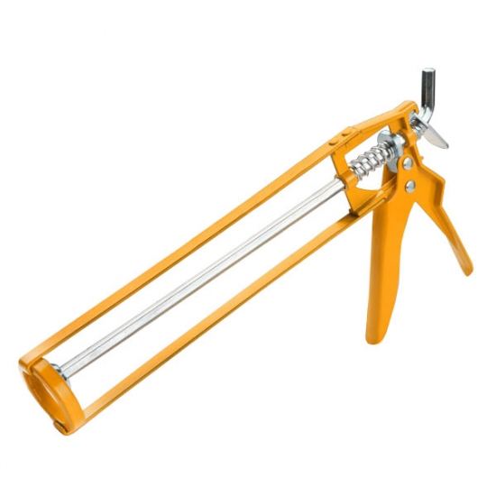 Пістолет для силікону в тубах NEO (арт. 61-004) з довжиною частини, що надівається на тубу 240 мм. Призначений для туб об’ємом прибл. 300 мл. Завдяки товщині металу 1,7 мм забезпечується тривалий ресурс інструмента. Потрійна напрямна уможливлює витискання навіть дуже густих речовин. Марка NEO відповідає очікуванням професіоналів.