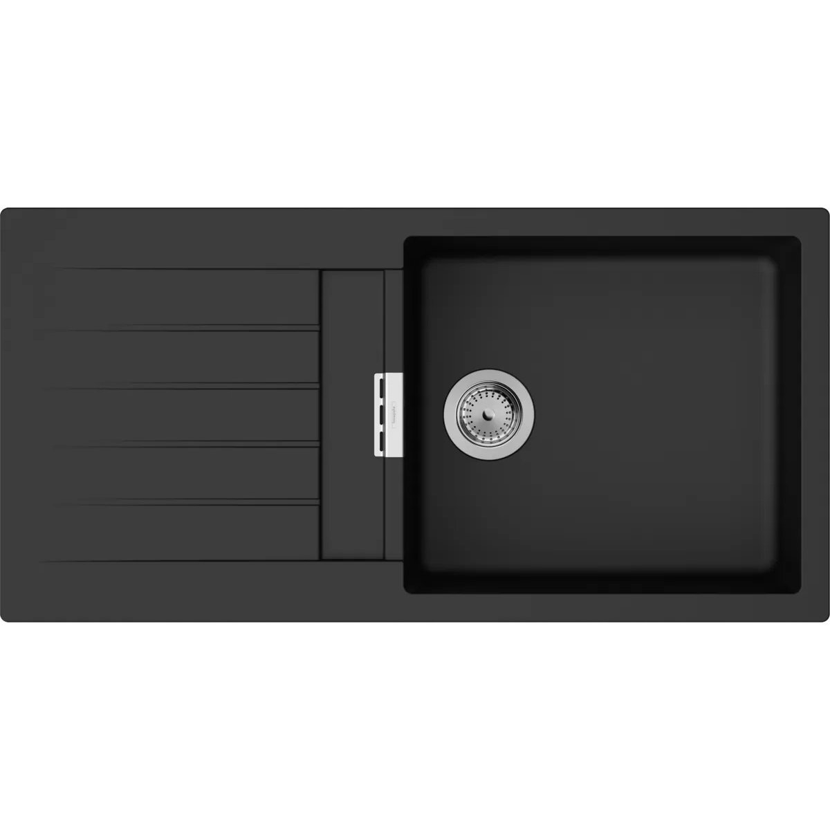 Опис Мийка кухонна Grohe K400, граніт, прямокут., з крилом, 860x500x205мм, чаша - 1, врізна, чорний граніт
