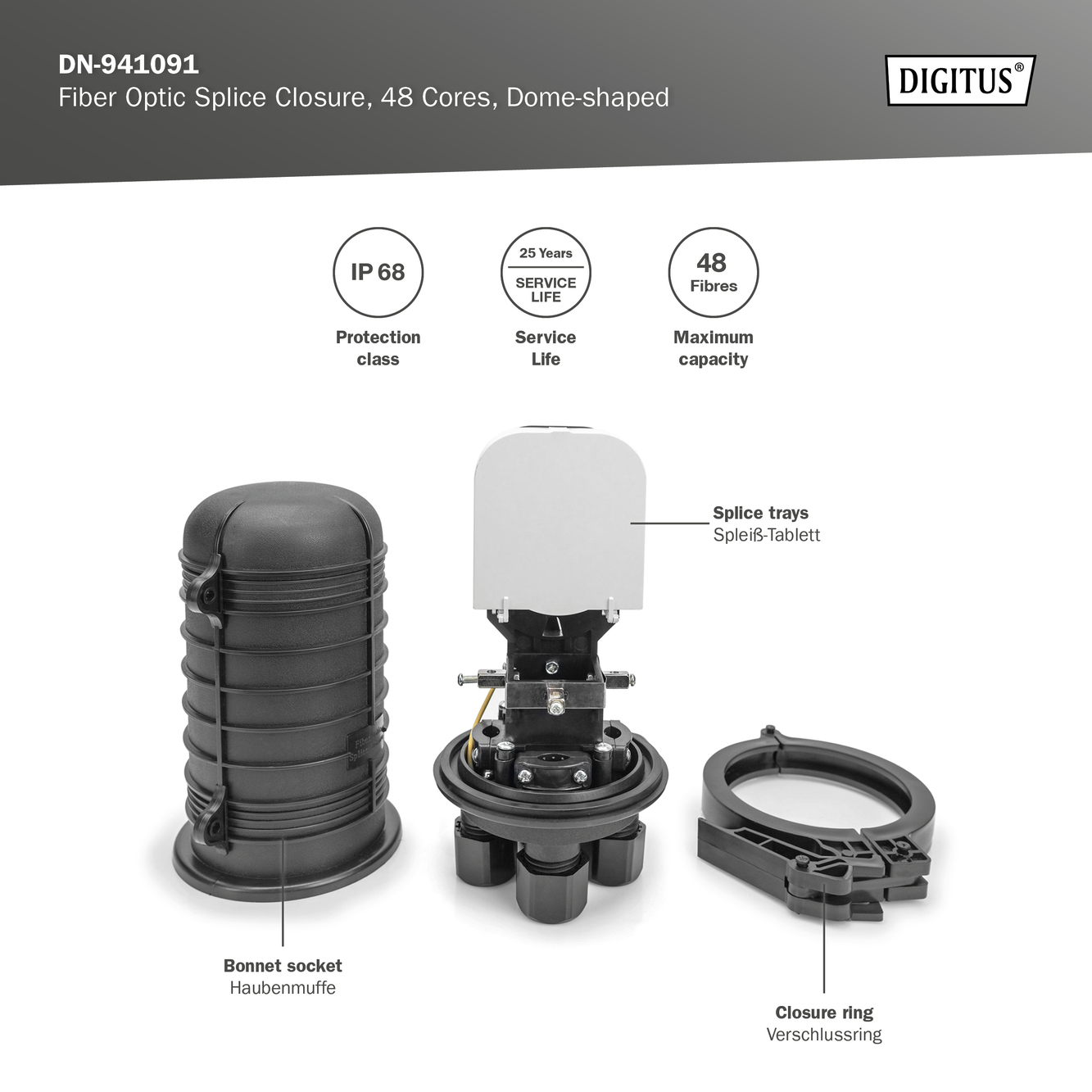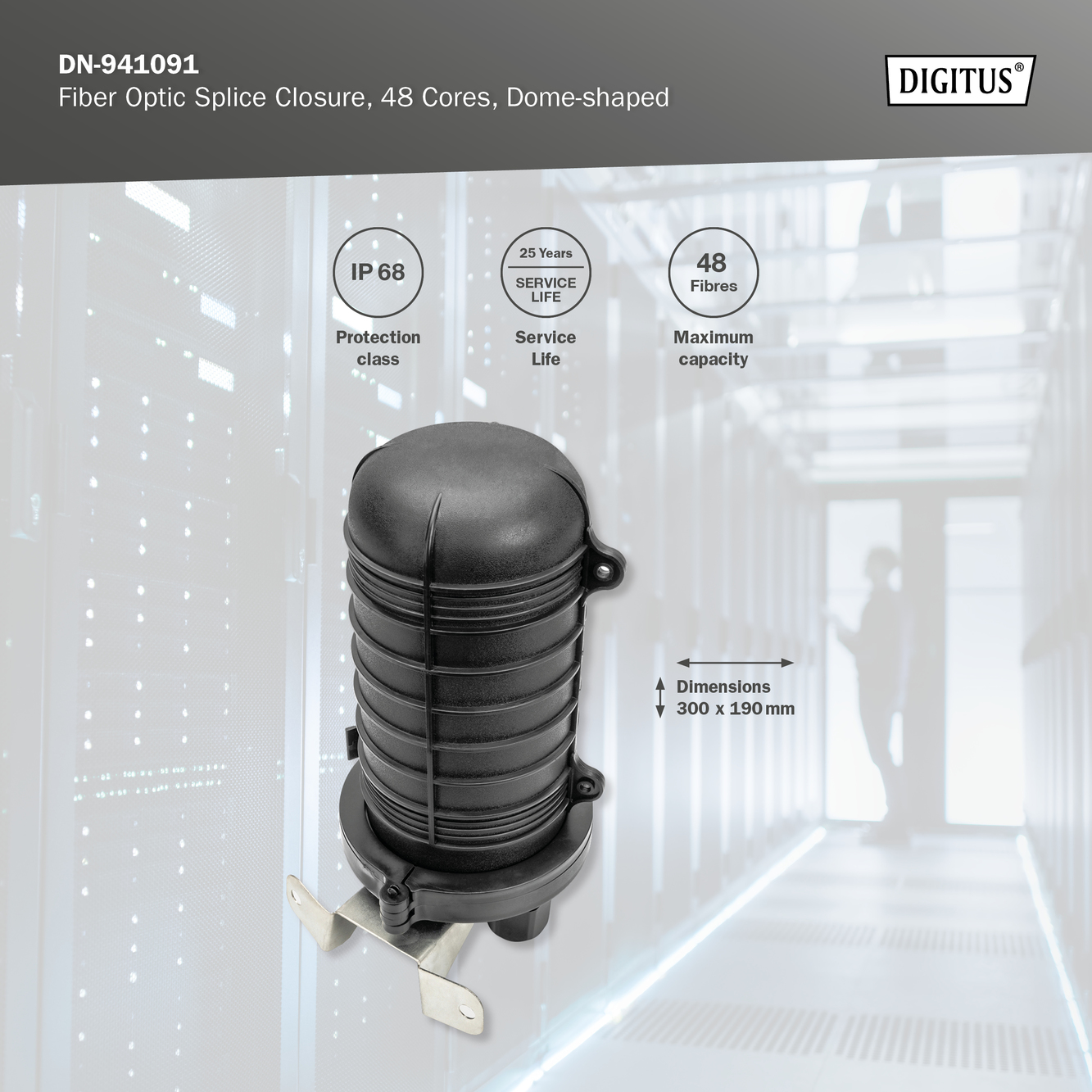 Лотки для з’єднання всередині кришки обертаються, як брошури, і мають достатньо місця для намотування оптичних волокон.
