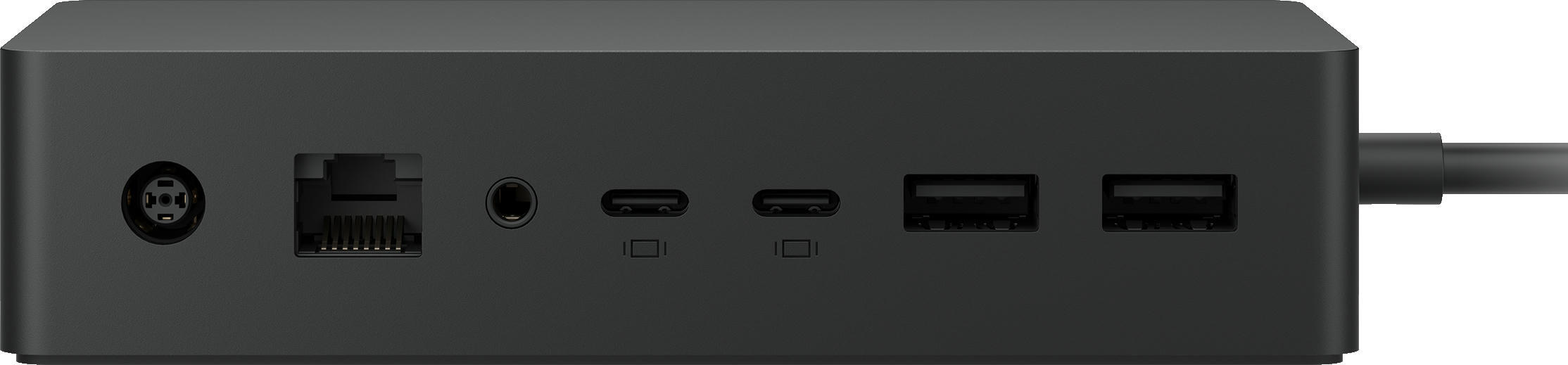 Док-станція Surface Dock 2 перетворює ваш Surface на потужний настільний ПК. Під'єднайте кабель Surface Connect, щоб зарядити пристрій і отримати доступ до зовнішніх моніторів, клавіатури, миші та інших пристроїв.