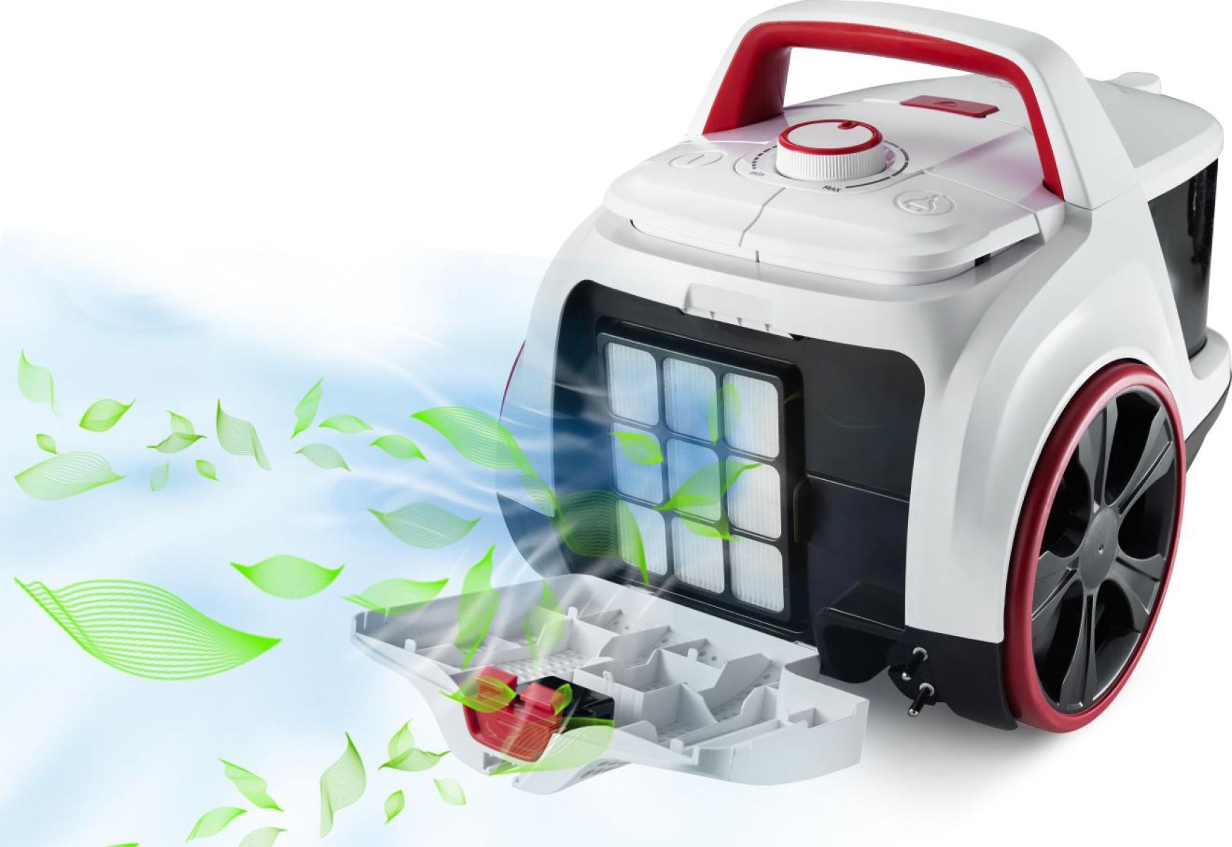 Пилосос Gorenje контейнерний VCE01SFAWR – компактний пристрій із циклонічною технологією, подвійним HEPA-фільтром та контейнером 3,3 л. Телескопічний шланг і 6-метровий шнур забезпечують широкий радіус дії. Маневрові колеса (360°) гарантують легке пересування. Енергоефективний двигун оптимізує продуктивність, а зручне кріплення спрощує зберігання.