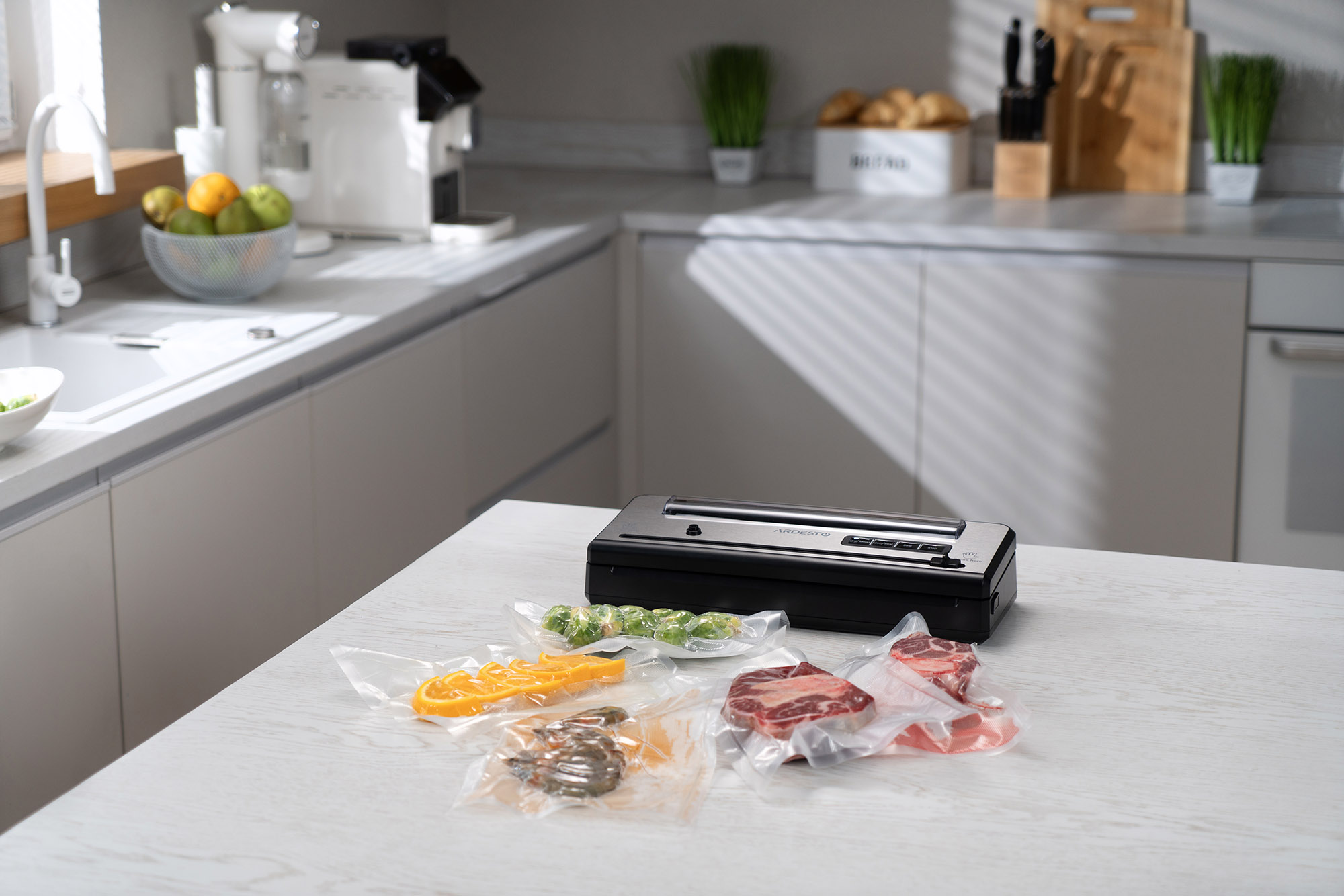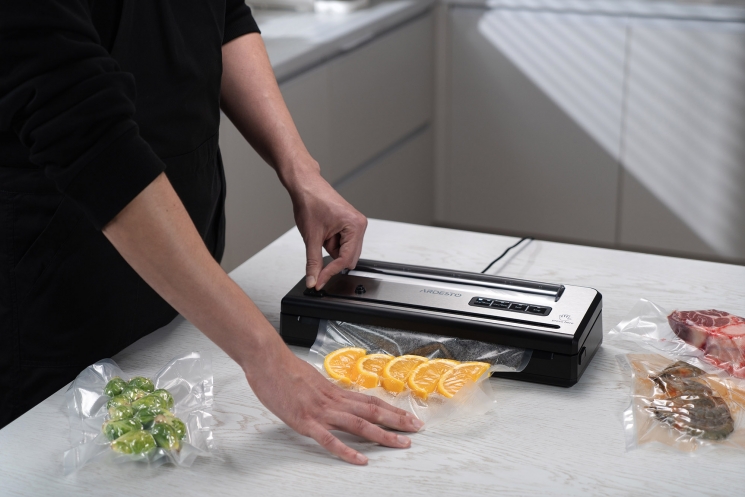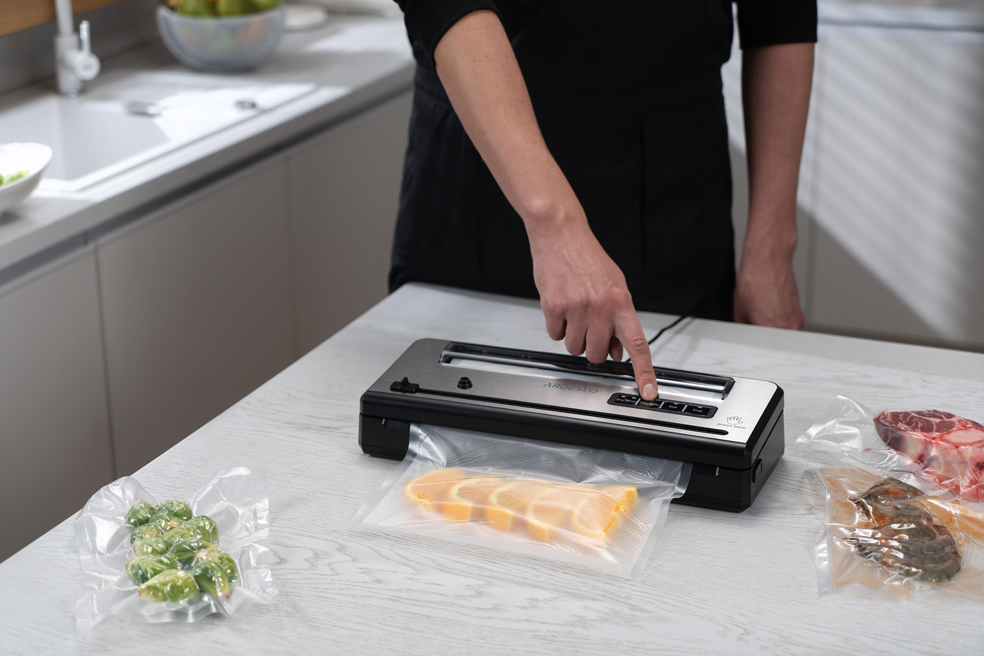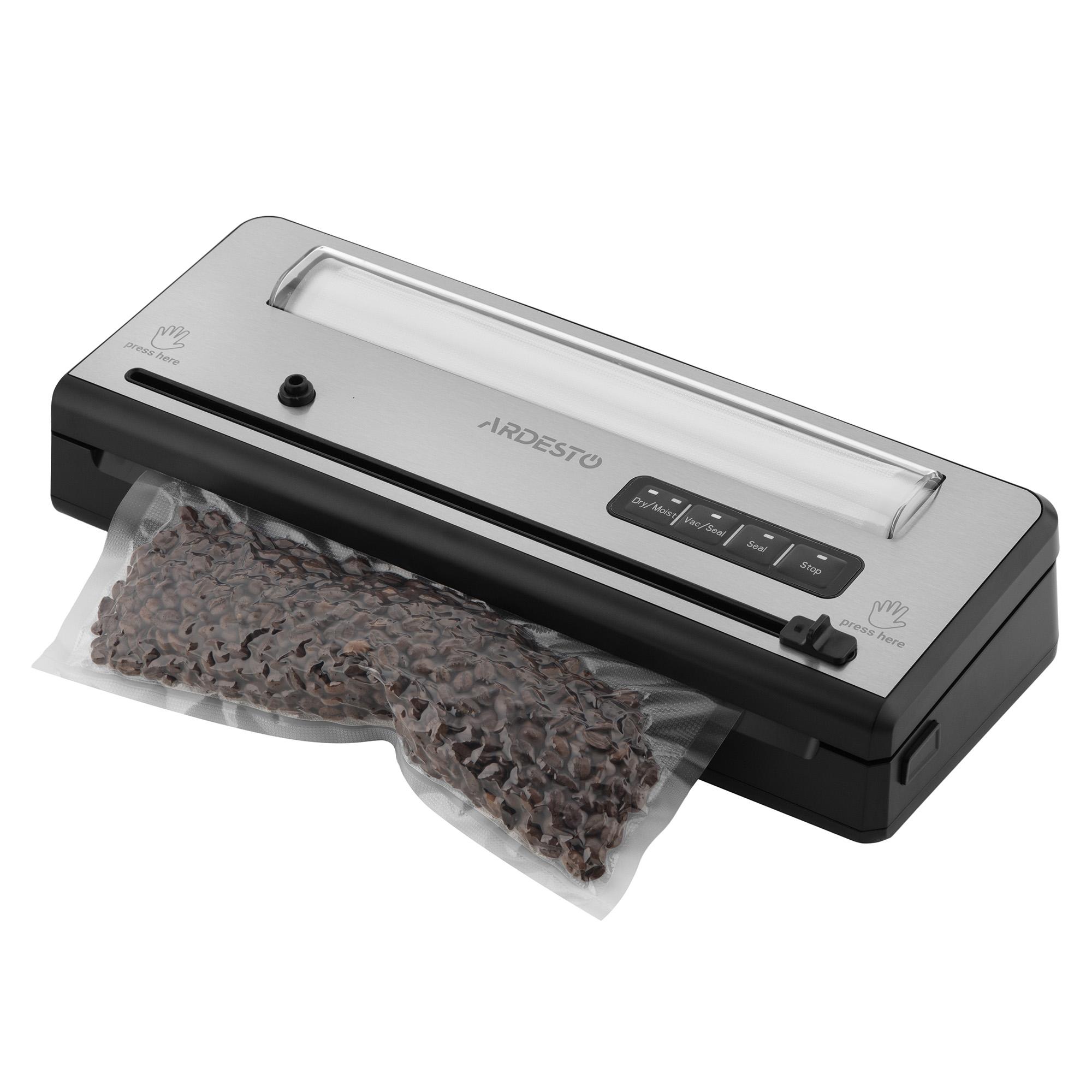 Опис Вакууматор ARDESTO для пакетів та рулонів, 110Вт, 28см, електронне, + 1 рулон, пластик+нерж., сріблястий