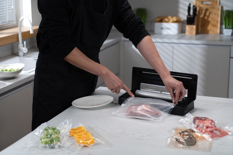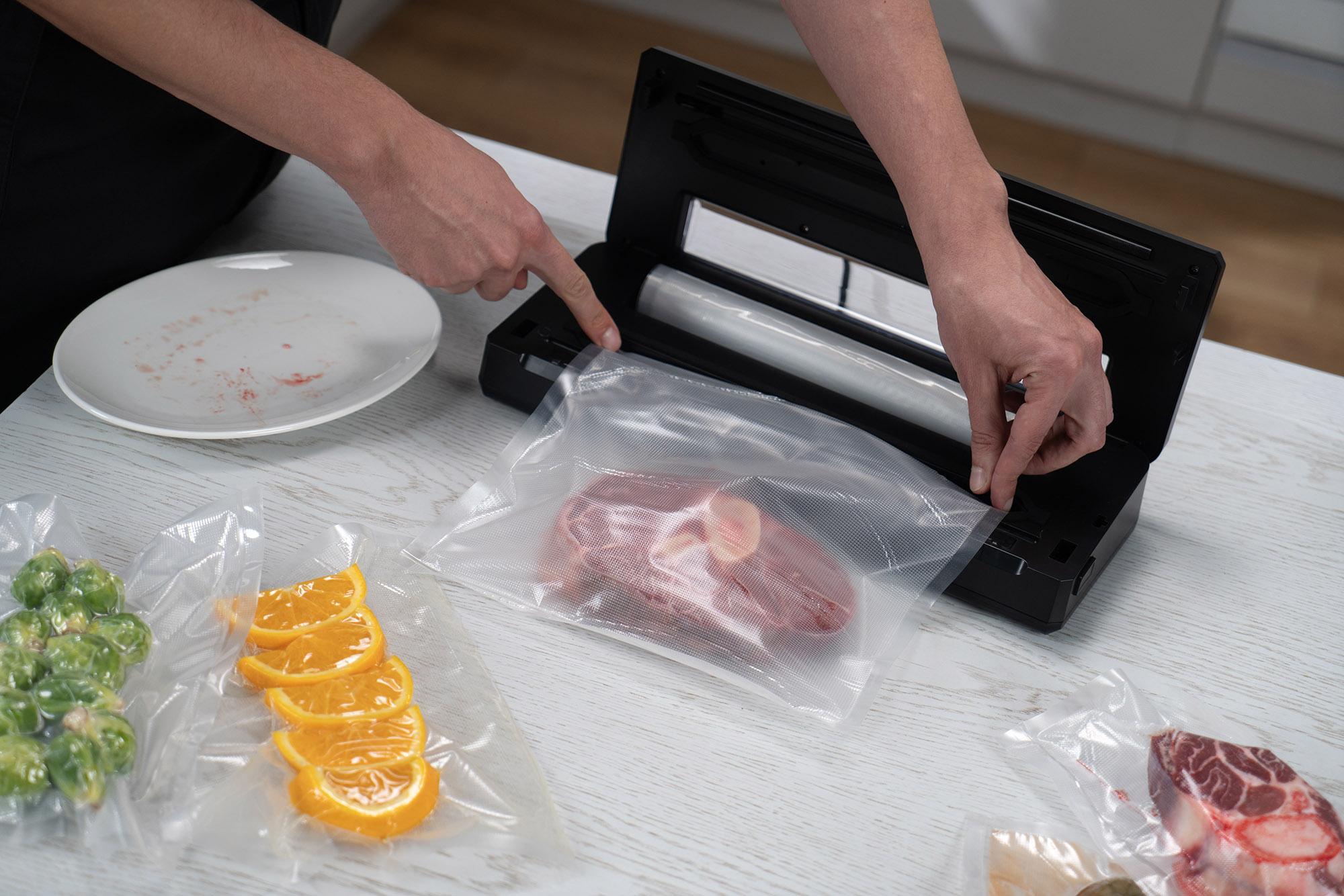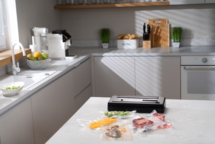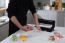 Приємний бонус – вбудоване рухоме лезо, яке спрощує нарізання пакетів із рулону, який (розміром 28 × 244 см) передбачено в комплекті. Завдяки швидкості відкачування 6 л/хв і тиску 0,6 бар VS-X2B легко справиться навіть із великими за обсягом пакованнями.