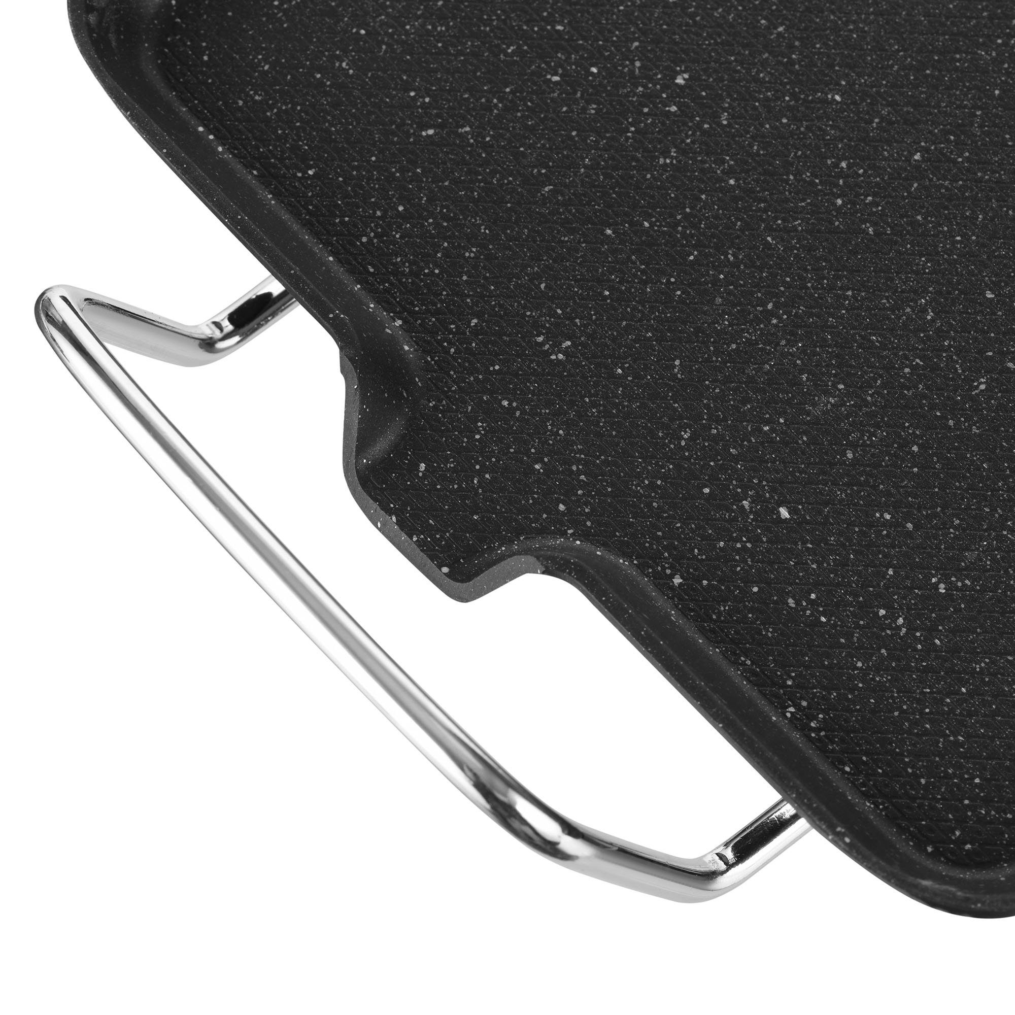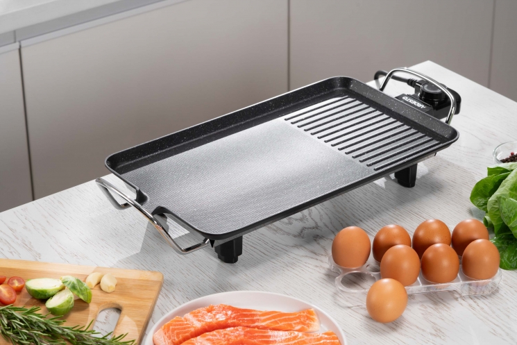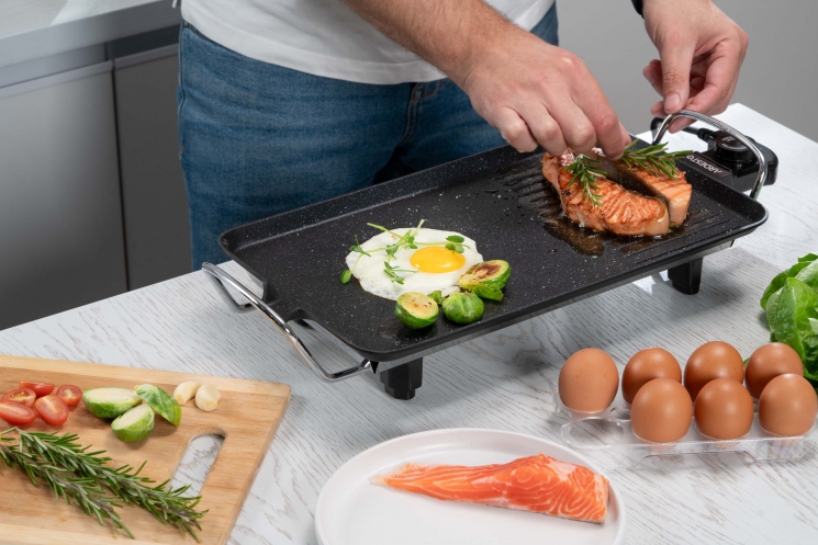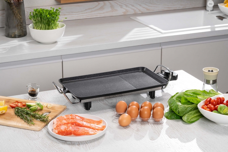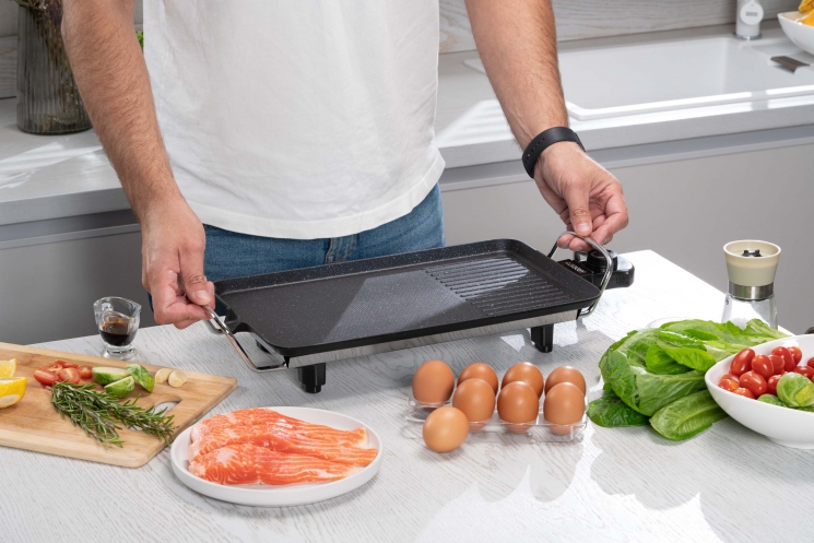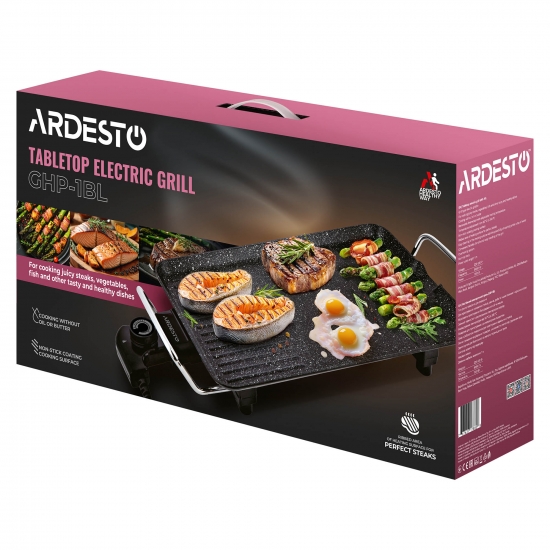 Настільний електричний гриль ARDESTO GHP-1BL перетворить будь-яку кухню на справжню зону барбекю. Завдяки потужності 1 500 Вт і можливості регулювання температури від 60 °C до 240 °C можна легко приготувати соковиті стейки, овочі чи рибу без олії чи масла. Протипригарна поверхня з ребристою ділянкою забезпечить апетитну скоринку, а знімний термостат дає змогу точно контролювати рівень нагрівання. Гриль безпроблемний щодо догляду, зокрема нагрівальну поверхню можна мити під проточною водою. Запорукою безпечності пристрою є система захисту від перегрівання, також конструкцією передбачено зручні руків’я для перенесення та нековзкі ніжки для надійної фіксації на поверхні.
