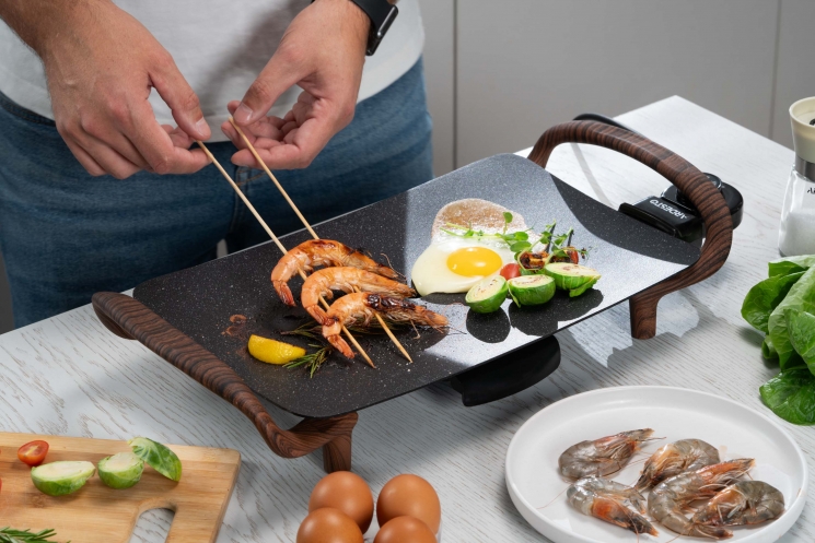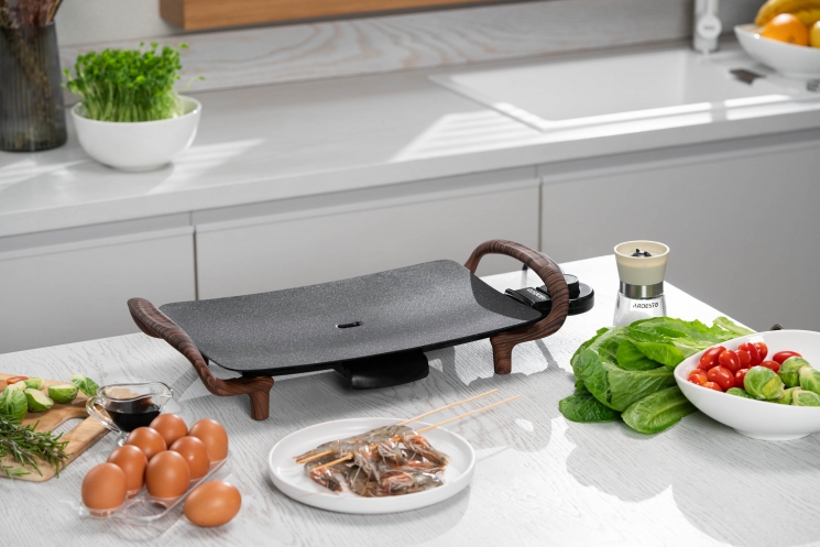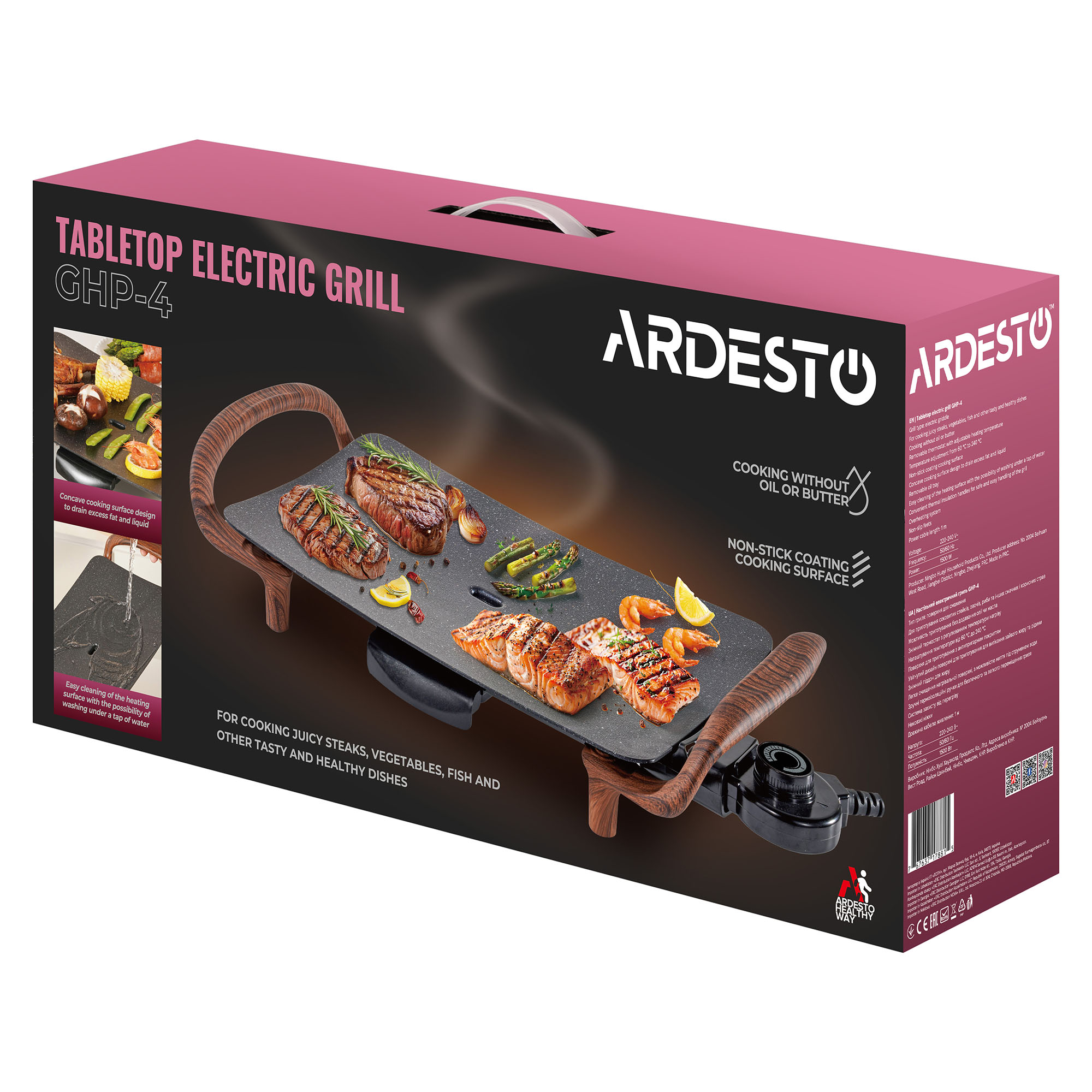 Настільний електричний гриль ARDESTO GHP-4 дає змогу готувати м’ясо зі скоринкою, соковиті овочі чи ніжну рибу без зайвого жиру, зберігаючи максимум користі та смаку. Завдяки протипригарному покриттю можна смажити без олії, а увігнута конструкція поверхні відводить надлишковий жир до спеціального знімного піддона. Із регульованим термостатом (від 60 °C до 240 °C) легко налаштувати оптимальну температуру готування. Гриль легко очищувати, зокрема нагрівальну поверхню можна мити під проточною водою, а термоізоляційні руків’я гарантують безпеку використання. Також конструкцією передбачено систему захисту від перегрівання та нековзні ніжки. Потужність 1500 Вт – запорука швидкого нагрівання, а 1-метровий кабель дає змогу зручно розташувати пристрій на кухні чи терасі.