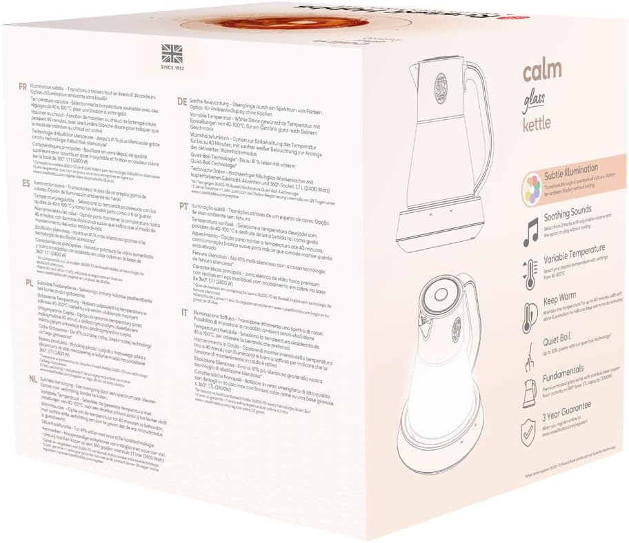 Russell Hobbs Электрочайник Calm, 1.7л, стекло, музыка, подсветка, сенсор, бело-медный