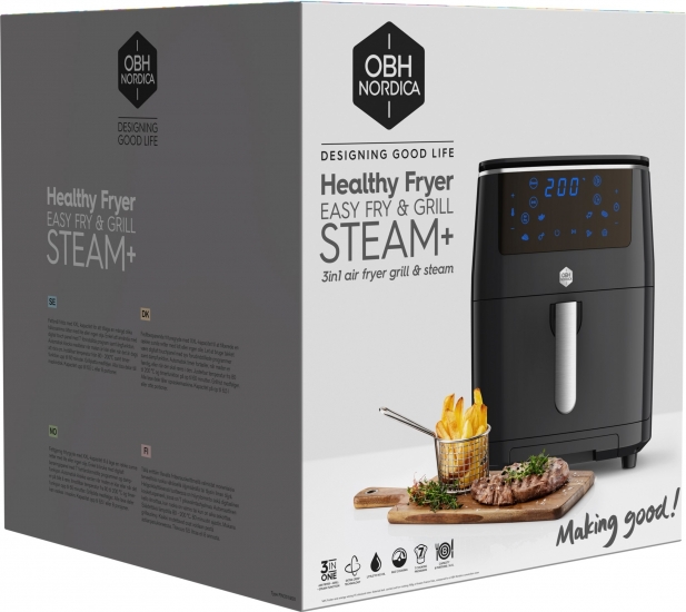OBH Nordica Easy Fry & Steam Black – це ідеальне рішення для тих, хто хоче готувати швидко, смачно та з мінімальним використанням олії.