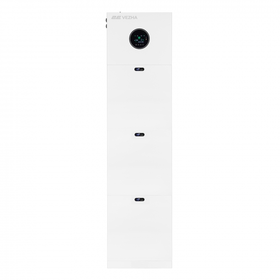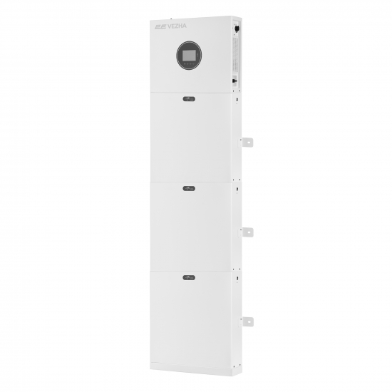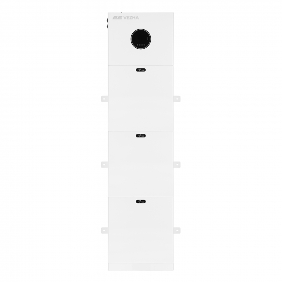 PowerWall VEZHA укомплектовано трьома модульними акумуляторами загальною ємністю 15,36 кВт·год. Кожен модуль – це автономна батарея на базі літій-залізо-фосфатної технології (LiFePO₄), що поєднує екологічність, безпеку й довговічність. Ресурс слугування до 6 000 циклів за 80 % глибини розряджання. Особливістю системи є її модульність: можна почати з одного акумулятора (5,12 кВт·год), а за потреби розширити систему до чотирьох модулів, тобто до 20,48 кВт·год. Інтелектуальна система BMS (Battery Management System) відповідає за моніторинг стану, захист і взаємодію модулів між собою.
