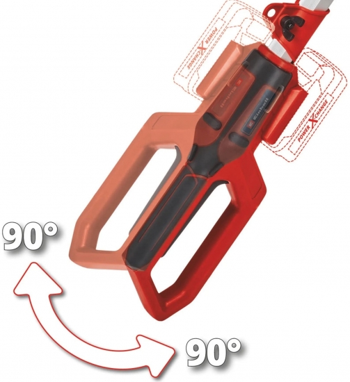 Телескопічний акумуляторний кущоріз лінійки Power X-Change system Einhell GC-HH 18/45 Li T - Solo серії Classic являє собою потужний багатофункціональний інструмент, який допоможе Вам зрізати навіть найвищий живопліт, чагарник з землі, не використовуючи при цьому додаткових пристосувань. Ви можете працювати саме там, де це Вам необхідно завдяки відсутності кабелю живлення, немає необхідності в розетках і кабельних барабанах і повністю відсутній ризик випадкового пошкодження кабелю або можливість спіткнутися об нього. Регульований ремінь для перенесення телескопічного акумуляторного кустореза GC-HH 18/45 Li T - Solo сприяє рівномірному розподілу ваги і безпечній роботі. Довжина пилки з ріжучим кріпленням завдяки розширюваній телескопічній штанзі вільно регулюється від 1,83 м до 2,5 м. Таким чином, ви можете досягти робочої висоти від 3,0 м до 3,7 м. У телескопічному акумуляторному Кущорізі Einhell GC-HH 18/45 Li T - Solo використовується металевий редуктор і шестерні, які забезпечують довгий термін служби. Леза кущоріза виготовлені зі спеціальної сталі, вирізані лазером і мають алмазну заточку, чим забезпечують чисті результати різу.