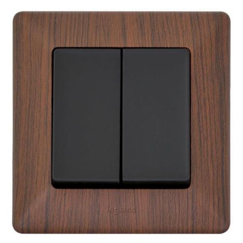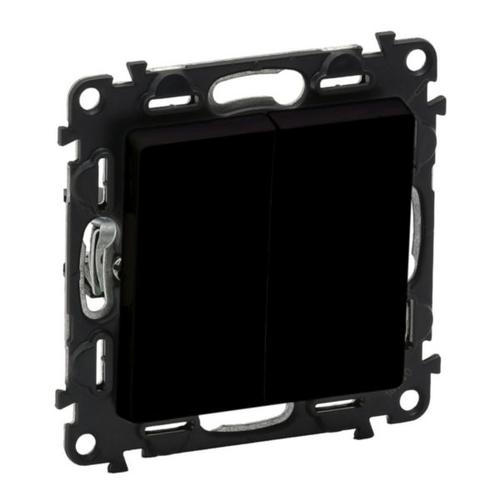 Legrand Выключатель 2-х клавишный Valena Life, 10AX, 250V, автоматические клеммы, матовый черный