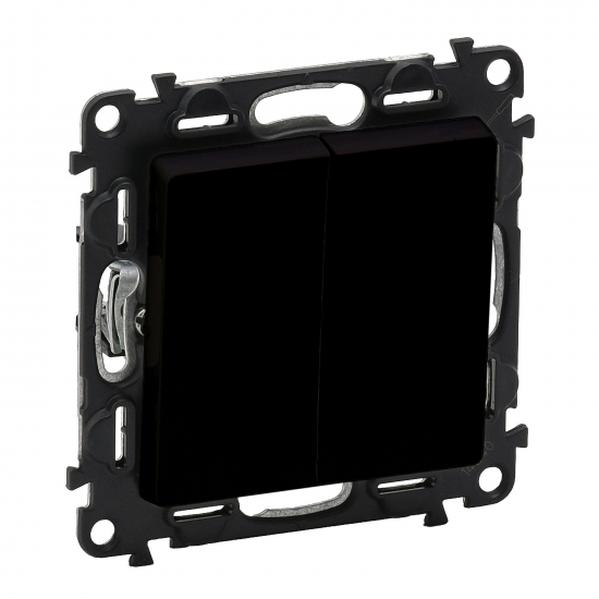 Legrand Переключатель 2-х клавишный Valena Life, 10AX, 250V, автоматические клеммы, матовый черный