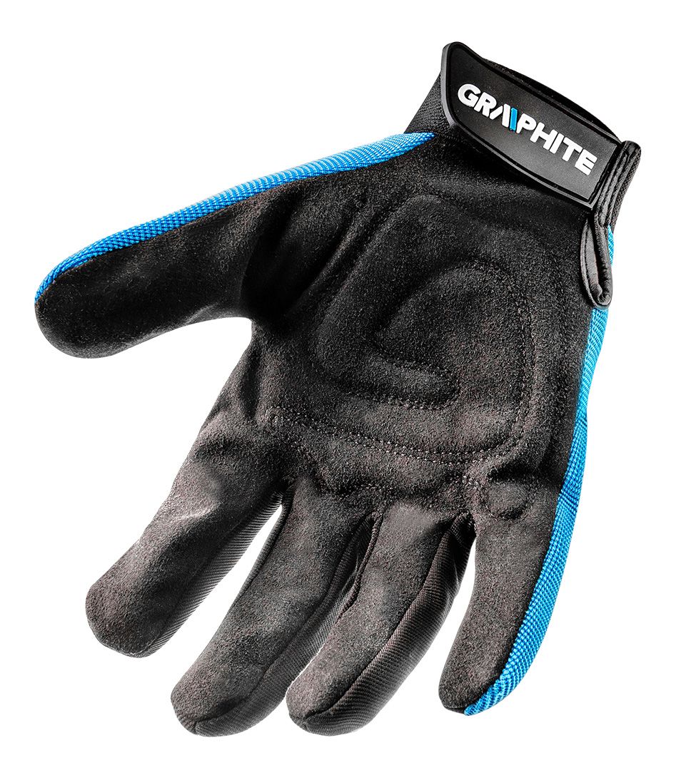 Технічні характеристики Рукавички робочі GRAPHITE, синтетична шкіра, фіксація зап'ястя, р.10/, чорно-блакитні: