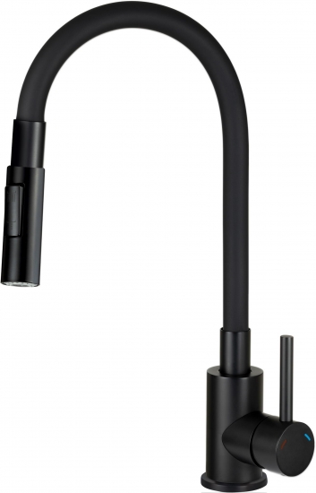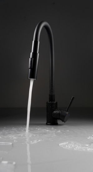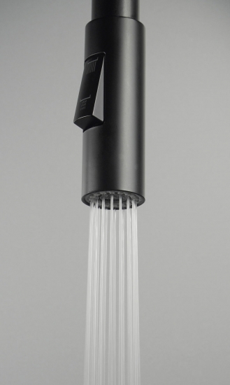 Змішувач BOC_N74M у комплекті має елегантний вигляд та ергономічну конструкцію. Його поворотний вилив дозволяє зручно мити великі каструлі та працювати з водою в різних напрямках. Змішувач виготовлений з латуні з графітовим покриттям, що чудово гармоніює з мийкою.
