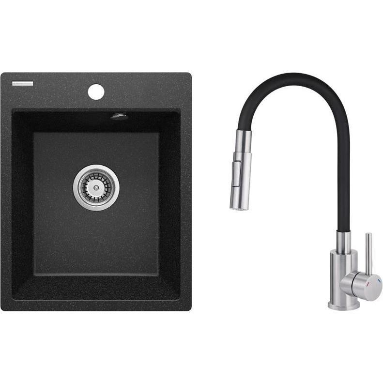 Головна - Побутова техніка, інструменти та товари для дому - Сантехніка - Кухонні мийки - Deante - Набір для кухні Corio, гранітна мийка ZRC_2103 + зміш. BOC_B740, графіт