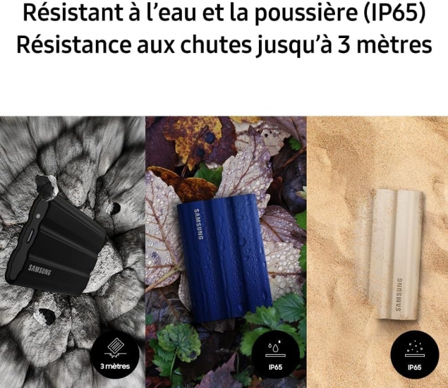 Основна перевага — захищений корпус. Виготовлений із прогумованого силікону, накопичувач має сертифікат IP65, що гарантує захист від пилу та водяних бризок. Крім того, він витримує падіння з висоти до 3 метрів, тож ви можете спокійно брати його із собою куди завгодно — у мандрівки, експедиції, на знімальний майданчик чи просто в офіс.