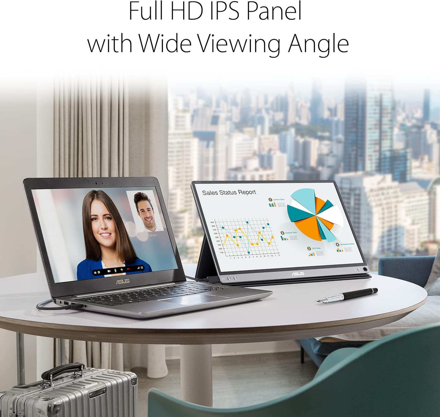 Завдяки тонкому корпусу товщиною лише 8 мм і вазі близько 780 г, ZenScreen легко поміщається в сумку для ноутбука. У комплекті — Smart Case, який не лише захищає екран у дорозі, а й служить підставкою з регульованим кутом нахилу.