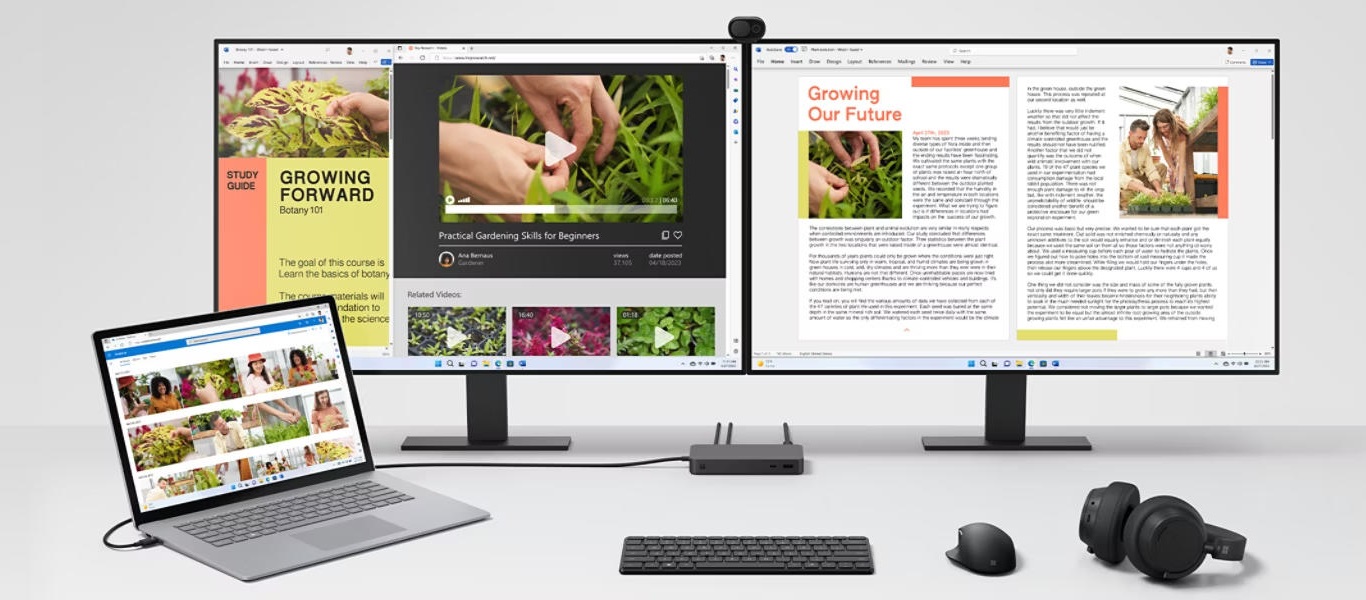 Корпуси док-станції Surface Thunderbolt 4 і блоку живлення (за винятком кабелю змінного струму) на 20% складаються з пластику, що переробляється в океані, і мають легші матеріали, ніж наші попередні док-станції. З упаковки док-станції Surface Thunderbolt 4 Dock було вилучено одноразові пластмаси, завдяки чому вона на 99% придатна для переробки в країнах ОЕСР.