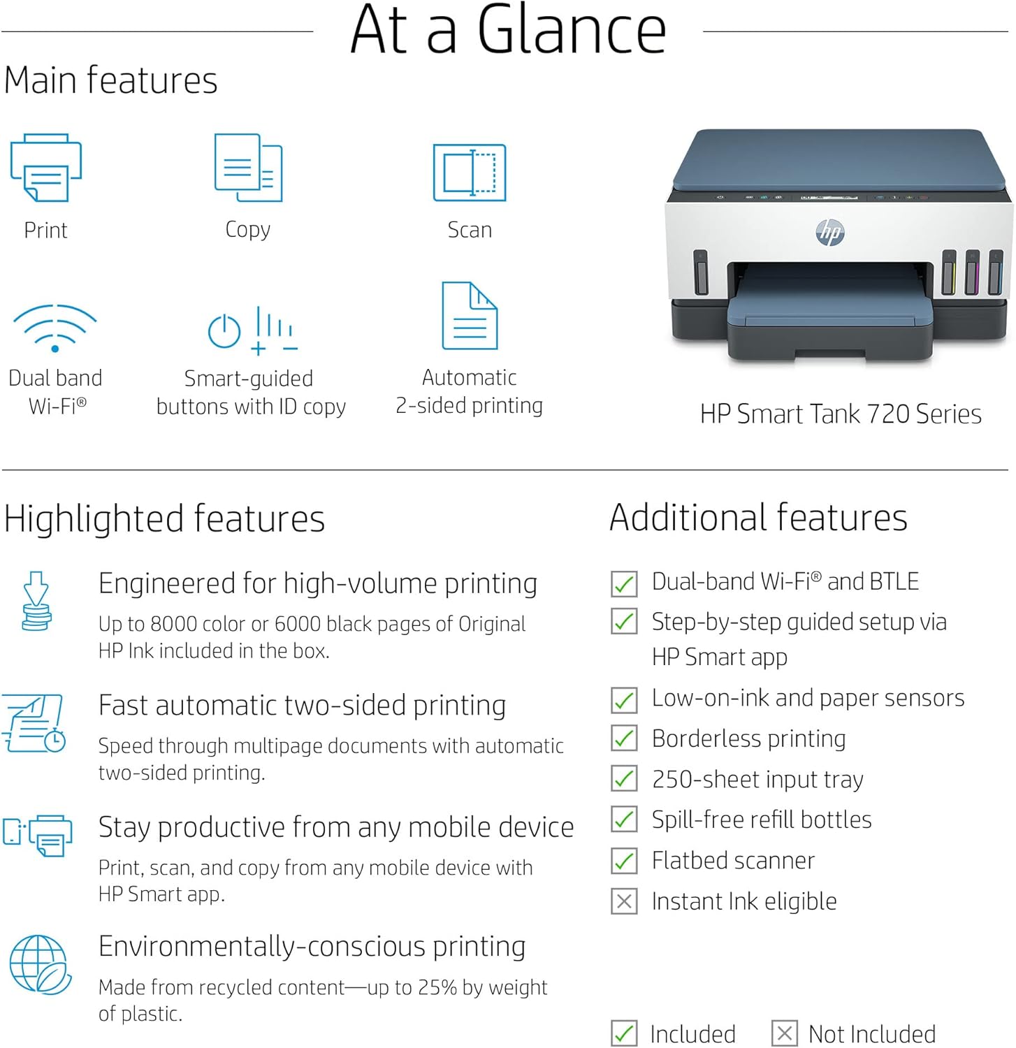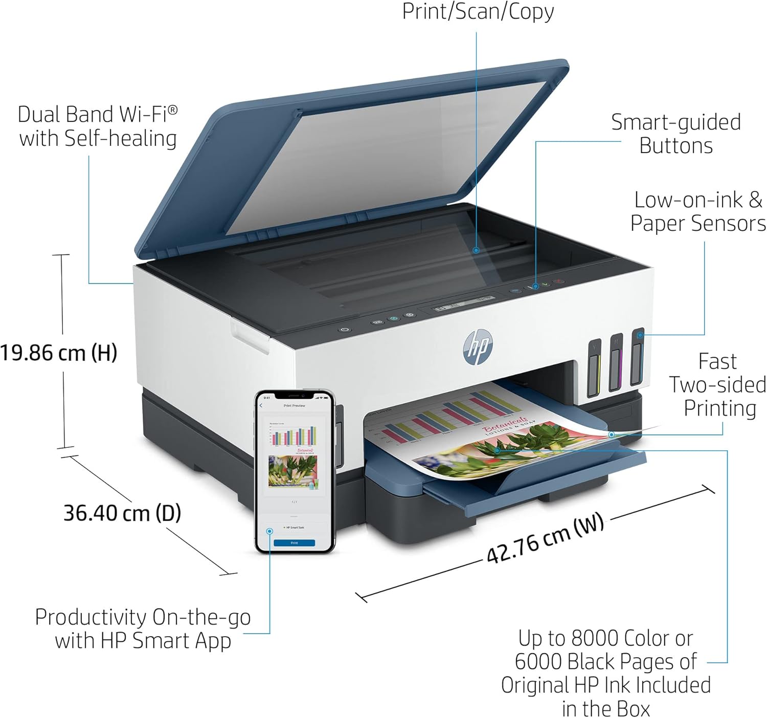 HP Smart Tank 725 — це універсальний МФП "3-в-1" (друк, сканування, копіювання), що поєднує в собі високу якість, вражаючу економічність та сучасні бездротові функції. Ідеальний вибір для тих, хто друкує багато та хоче знизити витрати. HP Smart Tank 725 — це надійне рішення для дому, малого офісу чи бізнесу, де щодня друкують багато документів без компромісів у якості.