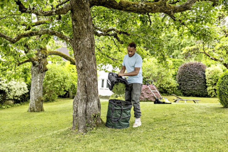 Косарка підтримує систему «2 в 1»: трава може збиратися у великий 40-літровий травозбірник або рівномірно розподілятися по газону за допомогою функції мульчування. Оптимізований повітряний потік забезпечує наповнення травозбірника до 95%, що дозволяє працювати триваліше без частого спорожнення.