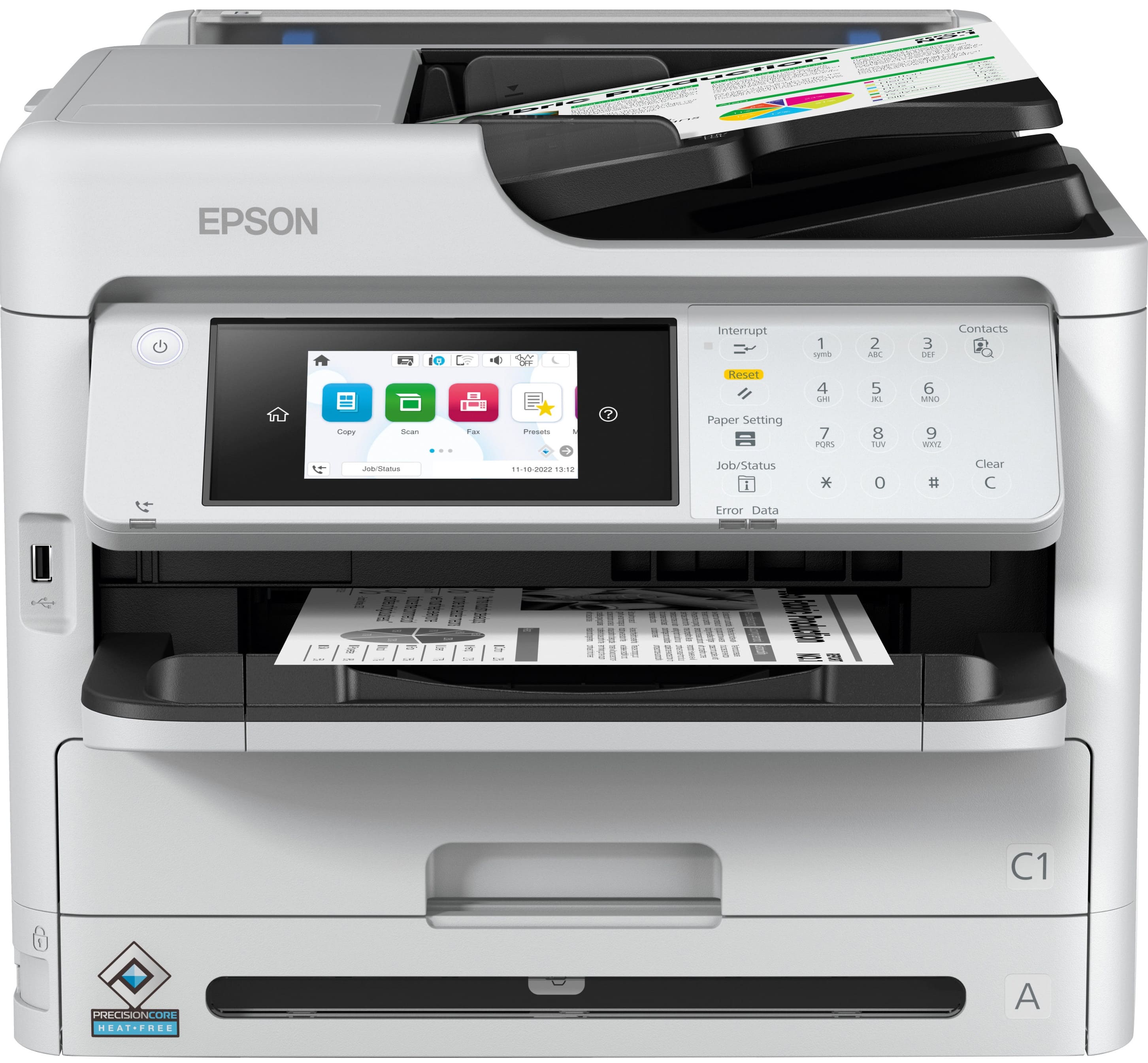 Технологія PrecisionCore Heat-Free забезпечує швидкий запуск без нагрівання, підвищену енергоефективність та стабільну якість друку. Пігментне чорнило гарантує стійкі до води та стирання відбитки, що ідеально підходить для ділових документів.