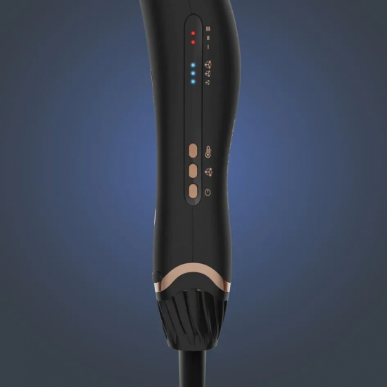 2 потока повітря в 2 різних напрямках забезпечують контрольований потік гарячого повітря, який проходить близько до волосся.