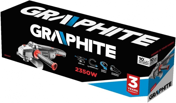 Основна рукоятка з антиковзною накладкою та додаткова рукоятка з можливістю фіксації у трьох положеннях забезпечують комфортну роботу як правшам, так і лівшам. З метою безпеки шліфувальна машина оснащена двоступеневою кнопкою, що запобігає випадковому включенню, і акуратною кнопкою блокування шпинделя.