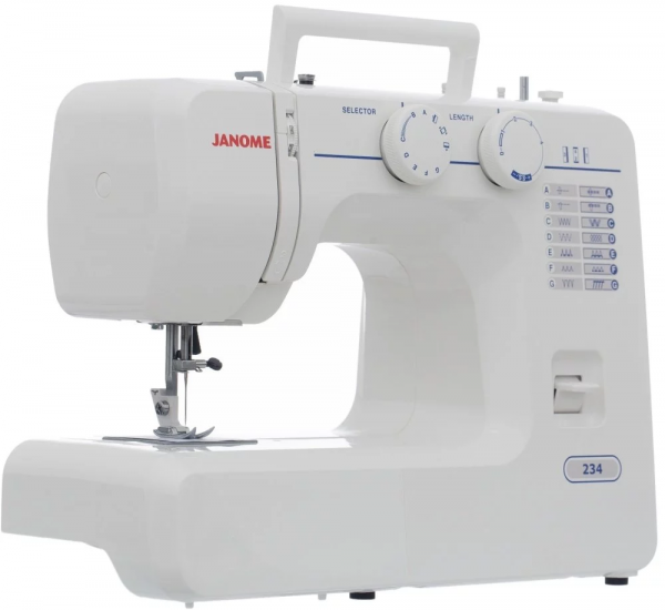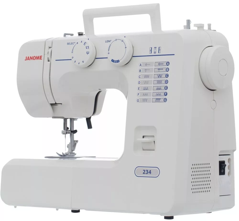 Швейна машина iSEW E36, електромех., 62Вт, 36 шв.оп., петля напівавтомат, білий+синій. Електромеханічна швейна машина iSew E36 з набором з 36 швейних програм, серед яких еластичні, оверлочні, потайні, робочі та декоративні строчки, а також виконання за 4 кроки петлі в напівавтоматичному режим. Комфортність роботи на цій моделі забезпечується можливістю плавного регулювання довжини стібка до 4 мм та ширини строчки до 5 мм.