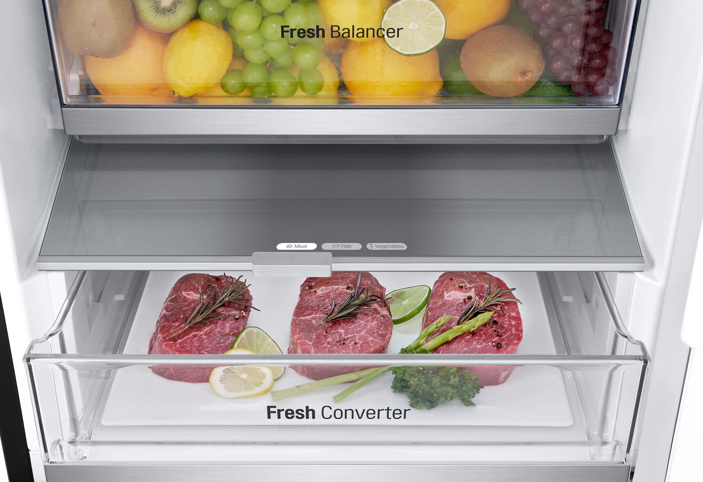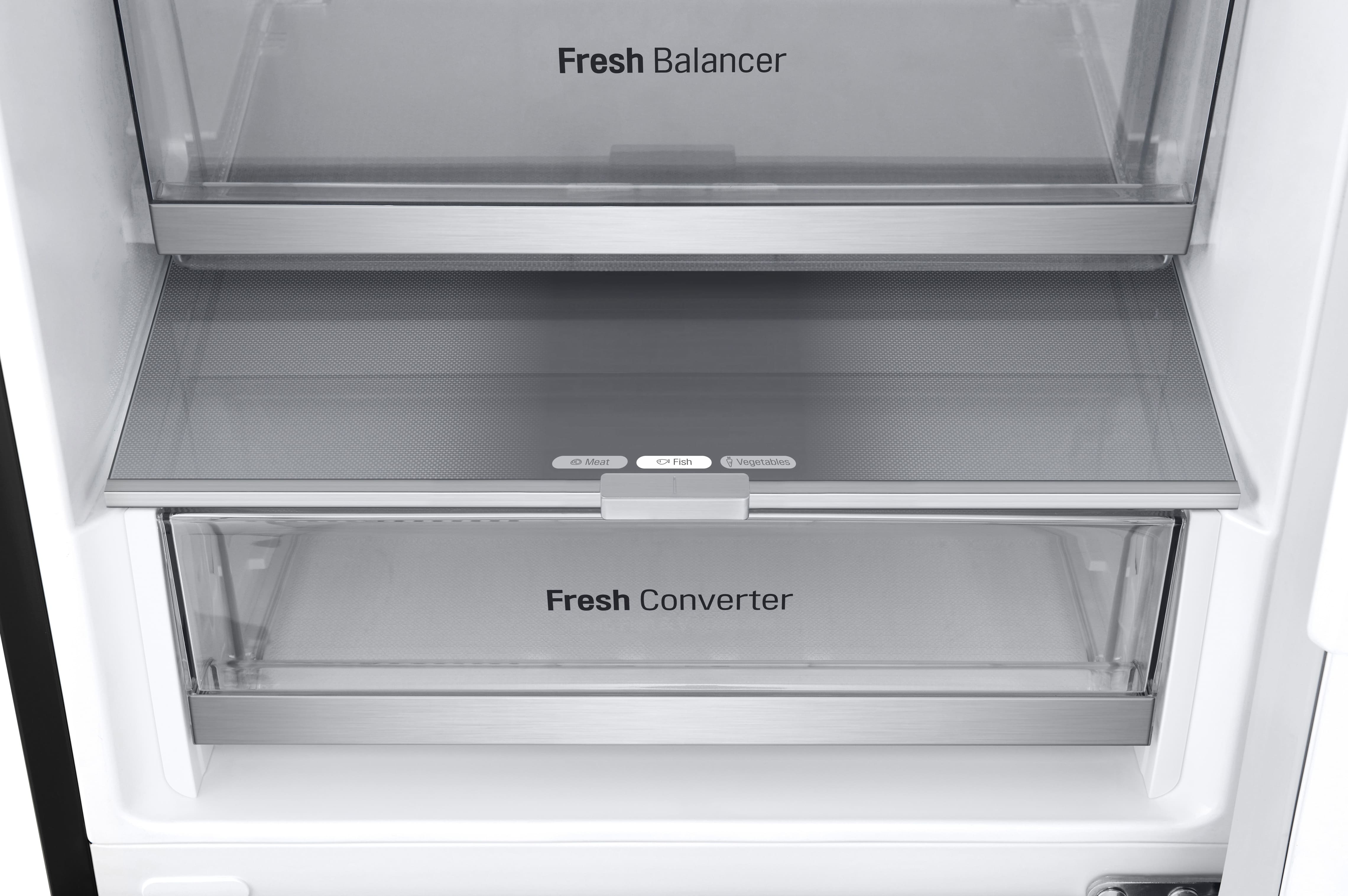 Де купити Холодильник LG з нижн. мороз., 203x60х68, холод.відд.-277л, мороз.відд.-110л, 2дв., А++, NF, інв., диспл зовн., Fresh Сonverter, Metal Fresh, чорний: